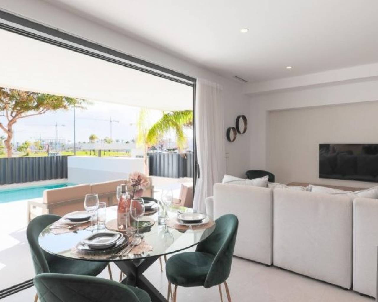 Luxury New Build Villas in Santa Rosalía Lake and Life Resort, Murcia Exclusive Villas in a Premier Gated Community Discover this exceptional collection of new build villas located within the prestigious Santa Rosalía Lake and Life Resort, one of the most innovative and sought-after residential resorts in the Murcia region. Surrounded by renowned golf courses and just 4 km from the beaches of the Mar Menor and the town of Los Alcázares, this development offers a unique blend of luxury, nature, and modern living. Contemporary Design with Premium Features Each villa is thoughtfully distributed over three floors and features: 3 spacious bedrooms, each with an ensuite bathroom Guest toilet for added convenience Open-plan living-dining area and fully fitted kitchen Private garden with a swimming pool featuring a waterfall Private solarium ideal for sunbathing or entertaining Basement (raw finish) offering flexible use On-site parking space These homes are built to the highest standards, including: Armoured front door Ducted air conditioning on ground and first floors Underfloor heating in bathrooms Aerothermal system for domestic hot water LED lighting (indoor and outdoor) Electric shutters in bedrooms High-performance aluminum exterior carpentry with thermal break and double glazing Home automation package included Built-in barbecue for outdoor dining Resort-Style Amenities for a Superior Lifestyle Santa Rosalía Lake and Life Resort spans over 126,000 m² of landscaped green zones. Residents enjoy exclusive access to: Crystal-clear lagoon-style lake of 17,000 m² with white sandy beaches Two private islands, one with a bar Several beach chiringuitos Clubhouse and leisure areas Walking and cycling paths Paddle and tennis courts, mini-golf, sports areas Dog parks and children's play zones 24-hour security and gated main entrance Prime Location with Excellent Connectivity Ideally situated for convenience and leisure: Los Alcázares beach and town: 4 km Lo Romero Golf Course: 9 km Roda Golf: 5 km Cartagena city: 15 km Murcia International Airport: 22 km Zenia Boulevard Shopping Centre: 30 km Secure Your Villa Today Whether you're seeking a primary residence, holiday home, or a high-return investment, these villas in Santa Rosalía Lake and Life Resort offer unmatched quality and lifestyle. Contact us now to receive more information and arrange a viewing.