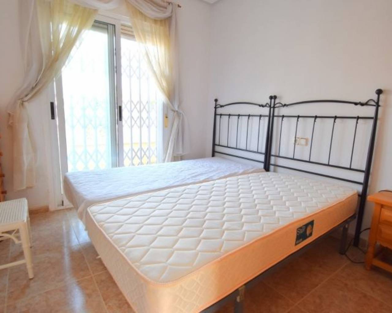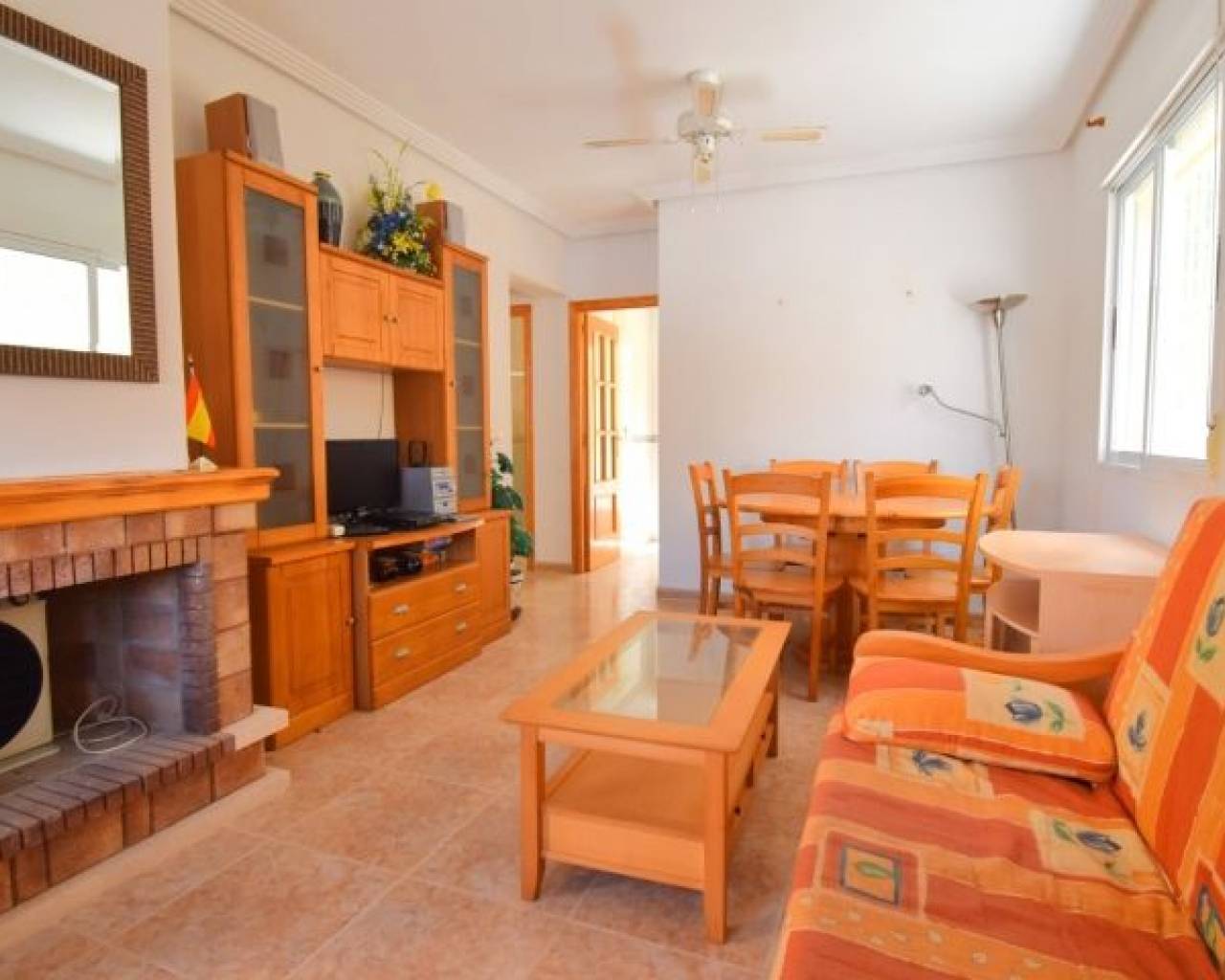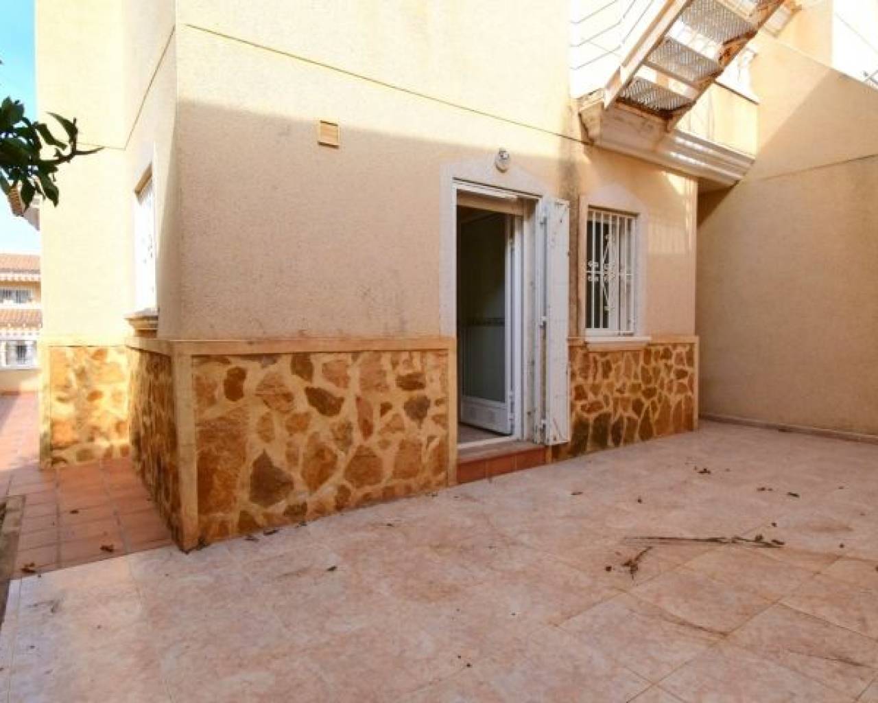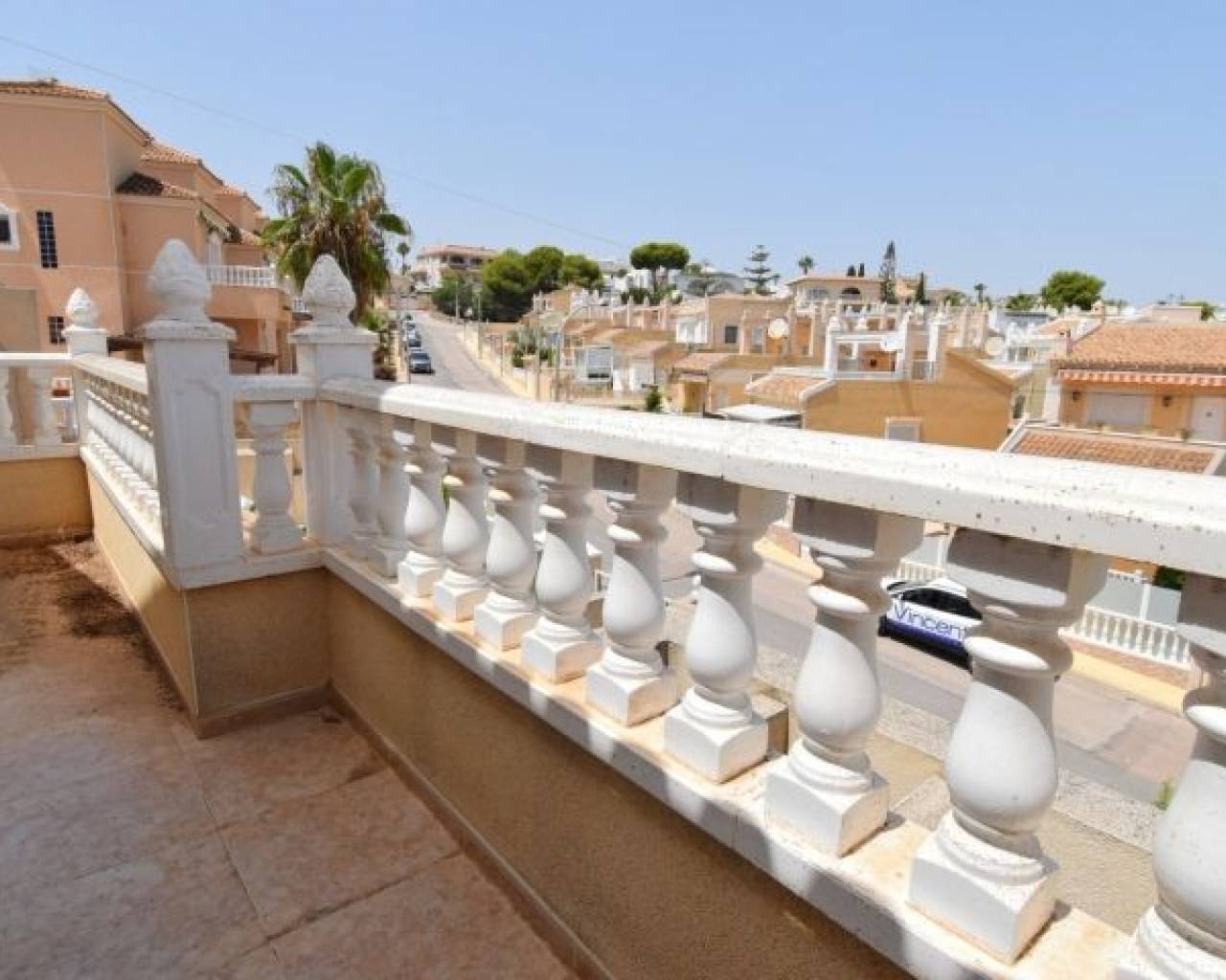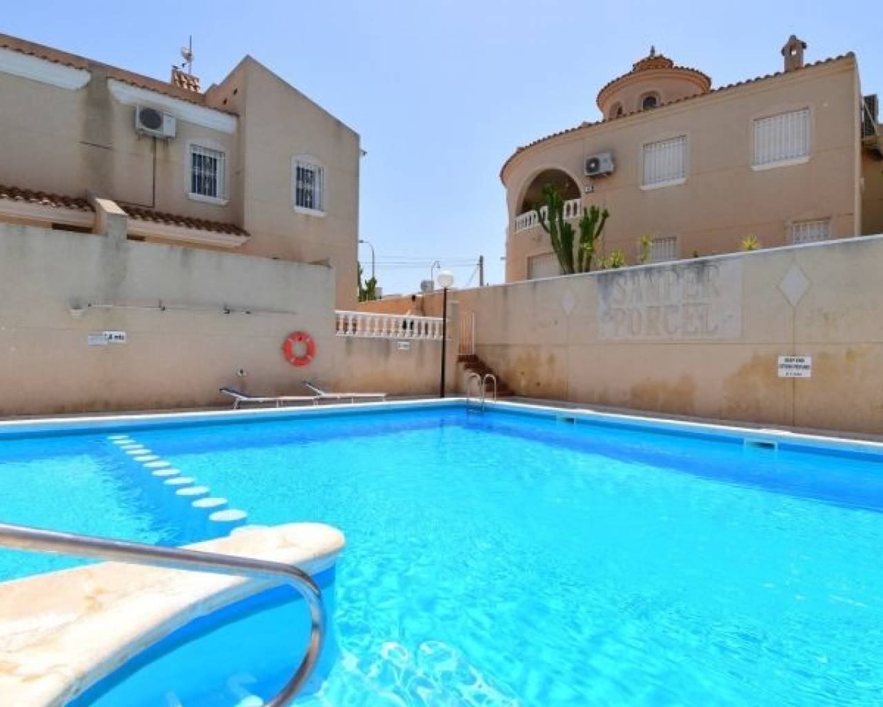 A Spacious, Three Bedroom, Semi Detached Villa in Blue Lagoon, located within a 10-minute walk of a variety of restaurants and café bars, while a main chain supermarket and commercial centre are also conveniently close by. For golf enthusiasts, there is a choice of three top courses within a 10-minute drive, and the popular La Zenia Boulevard shopping centre and stunning beaches are just 10 minutes away. The villa is accessed via steps leading up to a covered entrance terrace, which opens into a bright lounge/dining room featuring a charming fireplace; the fitted kitchen has a door providing access to a patio. Also on this level, there is a double bedroom and a shower room. On the first floor, there are two further double bedrooms, both with their own private terraces, along with a family bathroom. The outdoor space includes tiled off-road parking, a front garden, a rear tiled patio area with a pebbled border, and access to a well-maintained communal pool. Additional features include ceiling fans and built-in wardrobes in all bedrooms. Situated in a desirable location on the Costa Blanca South, this property offers a fantastic combination of comfort, convenience, and accessibility to amenities, golf, and the coast.
