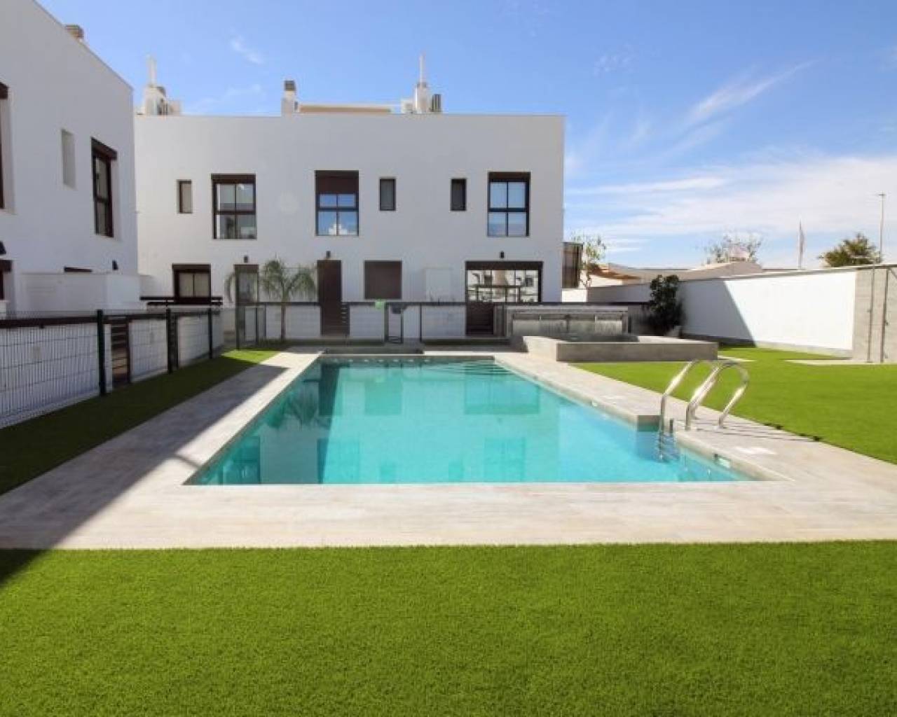 Modern Townhouses and Semi-Detached Homes in Pilar de la Horadada Discover this exclusive residential development featuring only six modern semi-detached and terraced homes in the tranquil town of Pilar de la Horadada, on the southern tip of the Costa Blanca. Designed with contemporary architecture and high-quality finishes, these new-build properties offer a perfect blend of comfort and style in a sought-after location. Spacious Three and Four Bedroom Layouts Each home boasts spacious living areas with an open-plan kitchen and living room designed to maximise natural light. Choose from three or four-bedroom floor plans, with two or three bathrooms depending on the model. Ground-floor layouts include two terraces: a front terrace with space for private parking and a rear terrace with direct access to the communal pool. The first floor features an additional terrace off the bedrooms, while upstairs a rooftop solarium provides panoramic views and an ideal space for outdoor entertaining. High-Quality Interior Finishes Interiors are appointed with premium materials, including smooth plaster walls, porcelain tile flooring throughout, and fitted wardrobes in each bedroom. The open kitchens come fully equipped with modern cabinetry. Additional comforts include pre-installation for ducted air conditioning and aerothermal systems for energy-efficient hot water. Community Amenities and Private Parking Residents enjoy a well-maintained communal pool, perfect for relaxation on sunny days. Each home includes a private on-plot parking space, ensuring security and convenience. Pilar de la Horadada: Traditional Charm on the Costa Blanca Pilar de la Horadada is a charming Spanish town known for its welcoming atmosphere and traditional architecture. The town centre is just a short walk away, where you will find supermarkets, local shops, restaurants, bars, and picturesque plazas. Enjoy a leisurely stroll along the main street, sampling authentic Mediterranean cuisine or exploring artisan boutiques. Proximity to Beaches and Airports Experience the best of coastal living with the fine sandy beaches of Torre de la Horadada and Mil Palmeras just a 5‑minute drive (approximately 2 km) from your new home. These beaches boast clear waters, golden sand, and a lively promenade lined with cafés and sea-view restaurants. For easy travel, Corvera Airport (Murcia) is approximately 40 km away (40 minutes by car), and Alicante Airport is around 55 km (55 minutes by car). Additionally, La Zenia Boulevard shopping centre is 15 km (15 minutes) from the development, offering a wide range of retail, dining, and entertainment options. Secure Your New Home Today Don’t miss this opportunity to own a brand-new semi-detached or terraced home in Pilar de la Horadada. Combining modern design, top-quality finishes, and a prime location near beaches, shops, and services, these properties are ideal as a permanent residence, holiday home, or investment. Contact us now for more information and to arrange a visit.