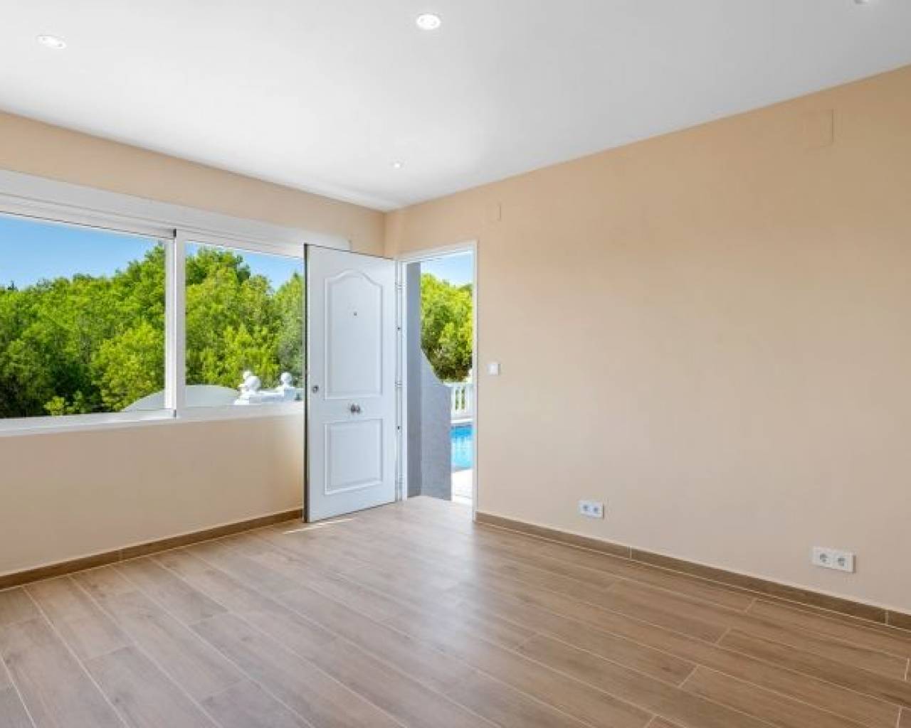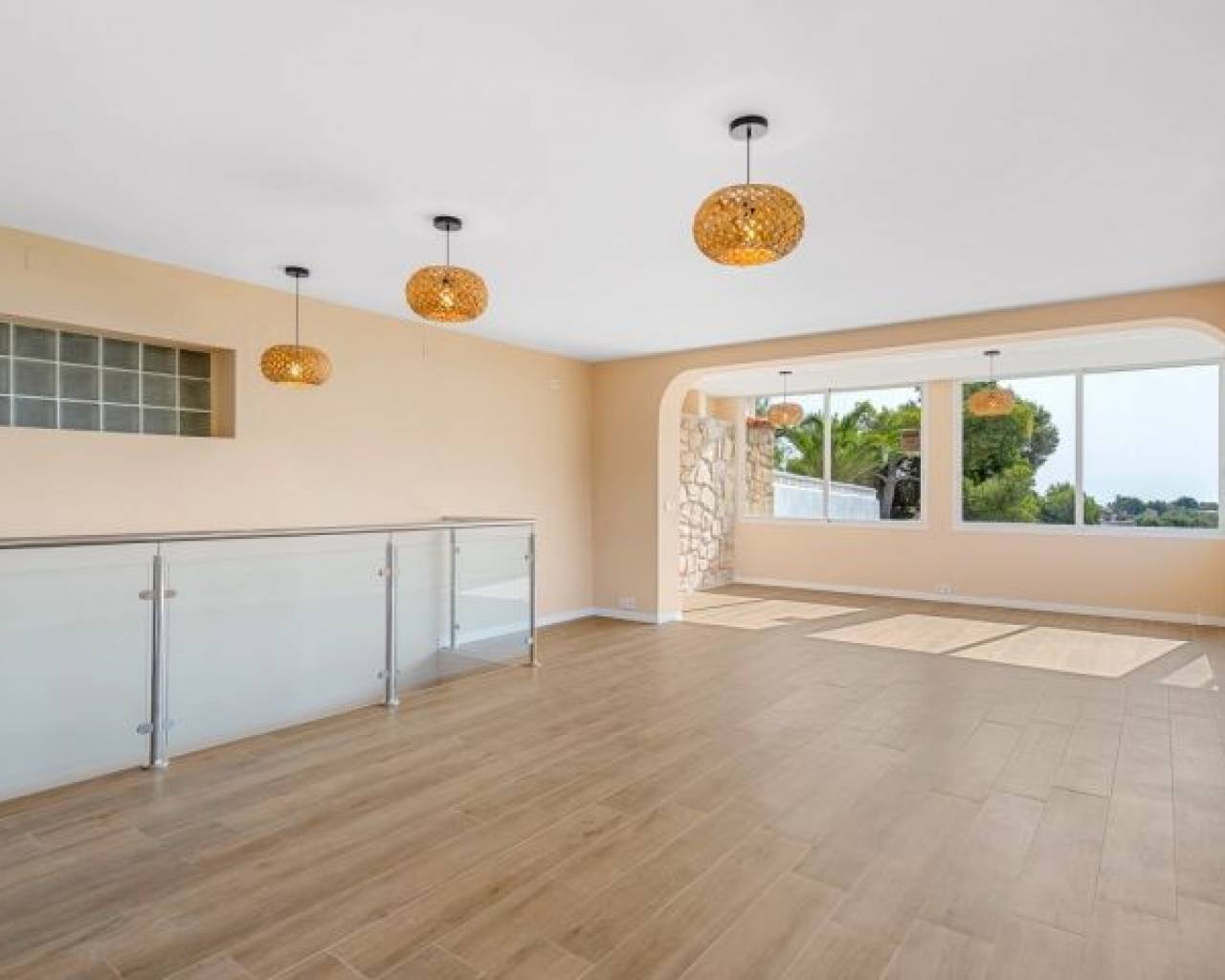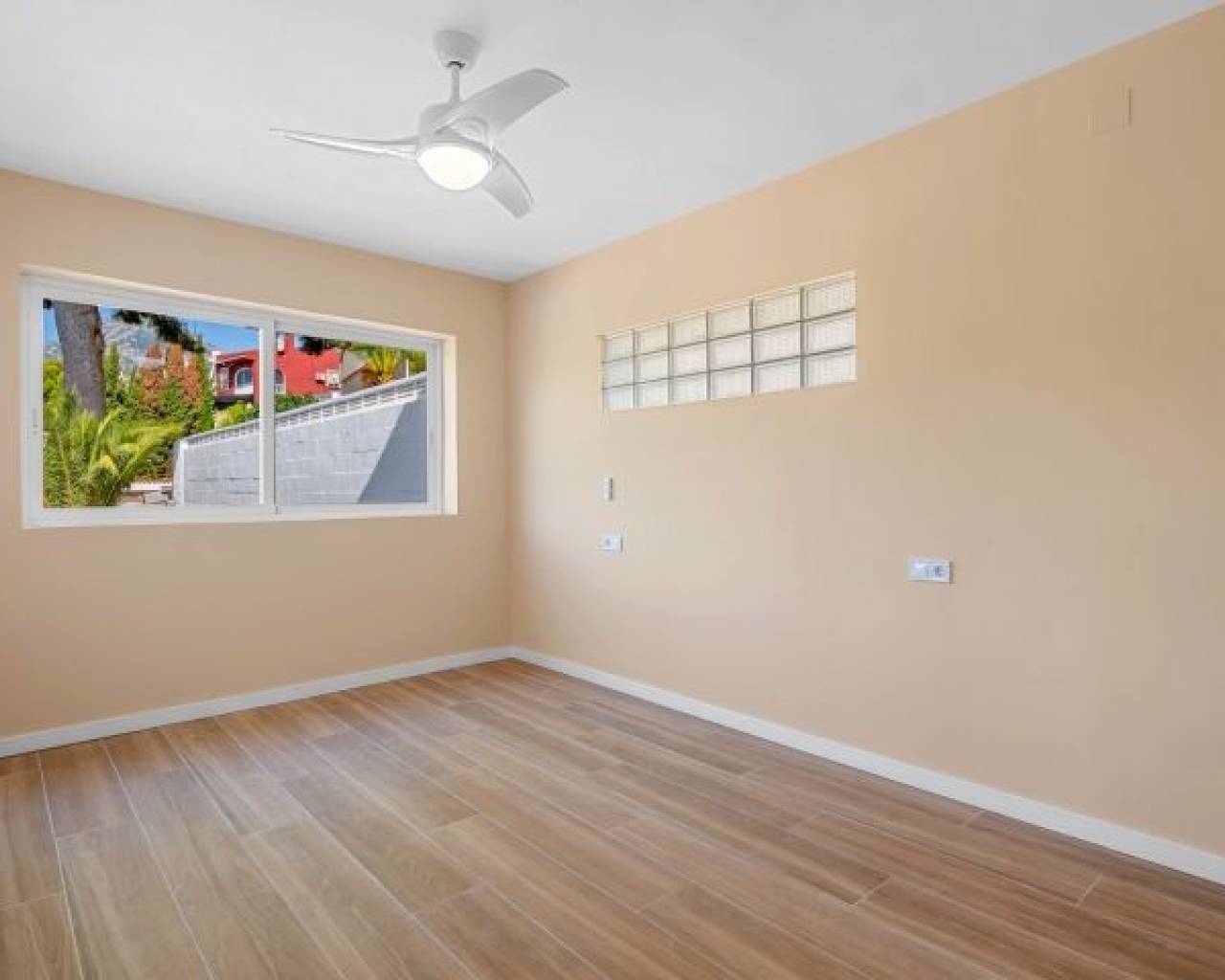 This fantastic sunny and bright villa, completely renovated in 2025, combines comfort, spaciousness, and Mediterranean style in a quiet yet well-connected setting, with beautiful open views of the sea and natural surroundings. With 216 m² built on a 1,268 m² plot according to the registry, it offers five spacious bedrooms, two full bathrooms, and one guest toilet, along with several outdoor areas designed to enjoy the Costa Blanca climate year-round. The main floor, at street level, features a large and bright living-dining room with fireplace and open views, a separate fully equipped kitchen, a terrace with direct access to the BBQ and pool area, a double bedroom, and a guest toilet. There is also a spacious entrance hall that can be used as an office, a closed garage for one vehicle, and a storage/laundry room. On the lower floor there are four double bedrooms, two of them with direct access to the garden, two full bathrooms, and a large chill-out area perfect for relaxation and leisure. From this level there is direct access to the private 36 m² pool, surrounded by a sun terrace and complemented by a covered bar with electricity and water connections, a barbecue, and a traditional pizza oven, as well as a wooden porch and a ramp running through the garden. The property stands out for its sunny orientation, modern finishes resulting from a full renovation, and a design aimed at a comfortable indoor-outdoor lifestyle.