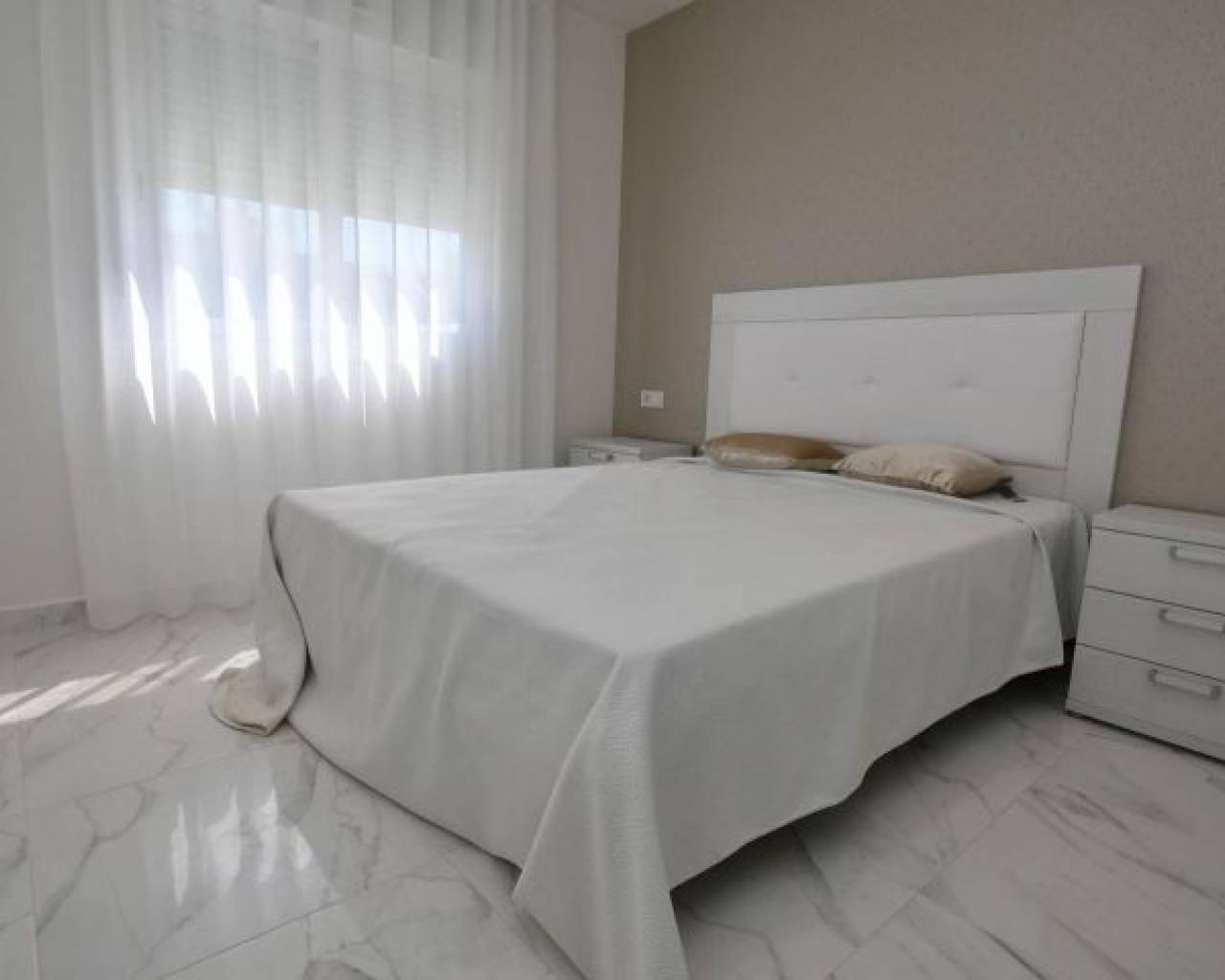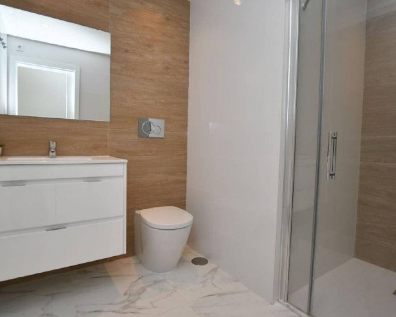 New Build Bungalows in San Miguel de Salinas – Nature, Golf and Comfort Discover this new residential development in San Miguel de Salinas, located in the sought-after area of “La Cañada”, surrounded by a protected pine forest between the prestigious golf courses of Campoamor and Las Colinas. Just 7 km from the Mediterranean coast, this residential offers the perfect blend of tranquility, nature, and easy access to all amenities. Spacious and Modern Homes The development offers two property types to suit different lifestyles: Ground floor bungalows: 2 bedrooms, 2 bathrooms, two large private gardens, and surface parking. Top floor bungalows: 2 bedrooms, 2 bathrooms, spacious solarium with sea views, and surface parking. Each home features generous dimensions and can be adapted into a 3-bedroom layout (optional at an extra cost), with kitchen appliances included. High-Quality Finishes Designed for comfort and functionality, all properties include: Fully equipped bathrooms with furniture, mirrors, and shower screens Aerothermal hot water system Built-in LED ceiling lights Exclusive Community Areas The residential features over 1,700 m2 of landscaped green areas with palm trees and Mediterranean plants. Residents can enjoy a large swimming pool with jacuzzi, a children’s pool, and sunbathing areas, making it the ideal setting to enjoy the Costa Blanca climate all year round. Privileged Location in San Miguel de Salinas This quiet residential is located less than 3 km from the charming town of San Miguel de Salinas, with all daily services at hand. In addition, beautiful sandy beaches in Orihuela Costa and Torrevieja are only 7 km away, offering endless leisure, shopping, and dining options. Close to Renowned Golf Courses For golf enthusiasts, the location is unbeatable. Within a 4 km radius you will find three of the most prestigious golf courses on the Costa Blanca: Villamartín Golf – 3.5 km Las Colinas Golf & Country Club – 4 km Campoamor Golf – 4 km Excellent Connectivity Key points of interest nearby include: San Miguel de Salinas – 3 km La Zenia Boulevard Shopping Centre – 10 km Alicante Airport – 55 km Murcia Airport (Corvera) – 50 km Secure Your New Home in San Miguel de Salinas Whether you are looking for a permanent residence, a holiday retreat, or an investment opportunity, these new build bungalows offer excellent value in one of the most desirable areas of the Costa Blanca. Contact us today for more information and to arrange a visit.