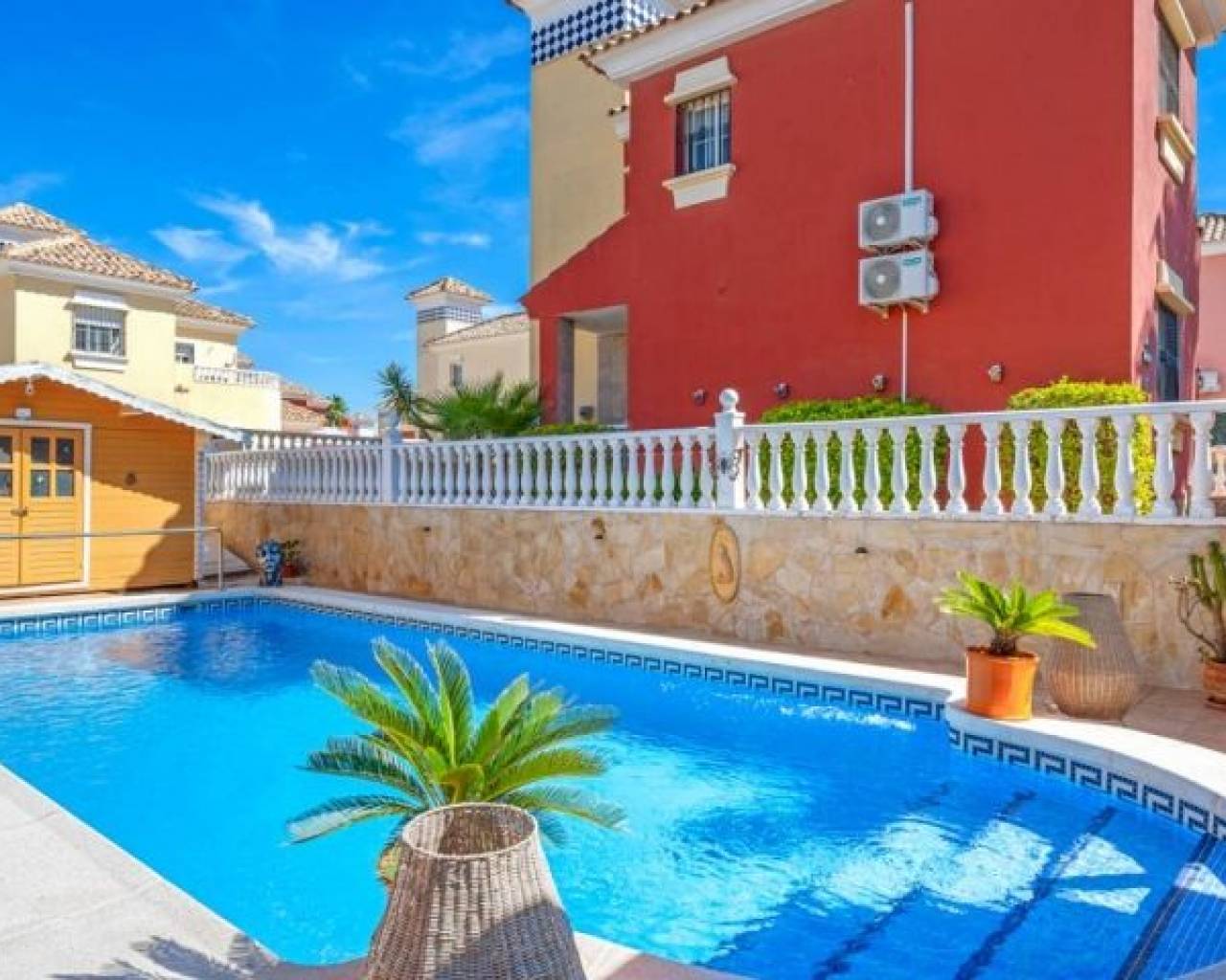 Stunning 3-Bedroom Villa with Private Pool in Lo Crispin This beautifully presented three-bedroom villa in Lo Crispin offers the perfect blend of modern style, comfort, and functionality. Situated in a highly sought-after residential area on the Costa Blanca, the property has been exceptionally well maintained and is move-in ready. Inside, you’ll find a bright and spacious open-plan lounge and dining area, furnished to a very high standard (Negotiable). The ground floor also includes a comfortable double bedroom and a stylish bathroom, ideal for guests or convenient everyday living. Upstairs, there are two additional double bedrooms with built-in wardrobes. One of these rooms is currently used as a cozy sitting area and benefits from a private balcony – the perfect spot to unwind with a cocktail while enjoying the views. The outdoor space is equally impressive. The villa features a beautifully landscaped garden with a private swimming pool, a shaded dining area for al fresco meals, and a wooden wrap-around pergola that provides both shade and versatility. A newly added storage structure offers extra practical space, making the home as functional as it is stylish. Whether you’re looking for a permanent residence, a holiday home, or an excellent investment opportunity, this villa for sale in Lo Crispin ticks all the boxes. Its prime location, high-quality finishes, and inviting outdoor areas make it one of the most desirable properties in the area.