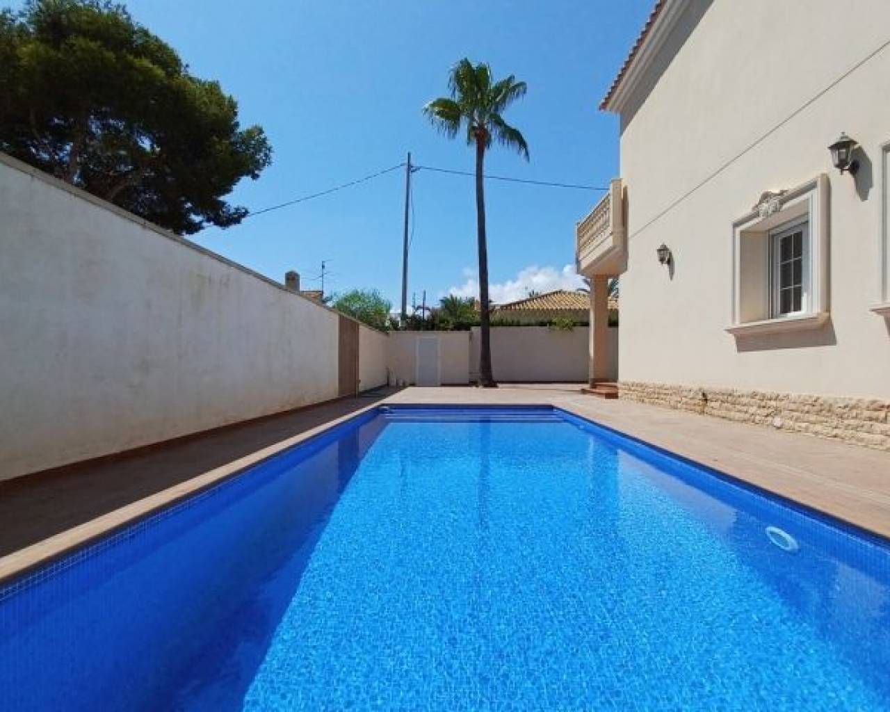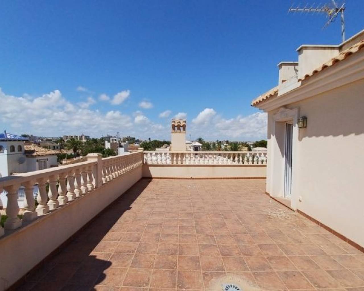 This fabulous home is located in a prime location in Cabo Roig, just 400m from the beach. This stunning villa has been beautifully refurbished throughout to a high standard with underfloor heating in all 4 bathrooms, air conditioning in all rooms and ceramo granite flooring throughout. Set on a 518m2 plot the property consists of: OUTSIDE High walls around the boundaries, with new non slip floor tiles, 8×6 infinity pool, space for parking 3 cars off road, shower, brick built storage room, room to make outdoor entertaining area on a 518m2 plot. LOUNGE 6.51 X 5.81 m2 Wood burn fire and marble fire surround fire place, windows to the side, door to the cloakroom with low flush toilet and sink. To the rear of the property there are patio doors that leads out onto the outdoor dining area. KITCHEN 1.91 X 5.90 m2 Fully fitted in cream shaker style units with ceramic hob, electric oven, fridge freezer, dish washer and washer all made by Bosch. Granite work tops and splash backs, electric boiler, window to the side and door to the rear side leading to the garden. Possible to make a garden kitchen. BEDROOM ONE 2.44 X 4.33 m2 Window to the side, air conditioning installed. This room could be used as office or dining room. Has all pre-installed internet and communication cables. BATHROOM 3.65 X 1.77 m2 Under floor heating, shower cubicle, sink, low flush toilet, bidet and window to the side. Tiled tastefully throughout in cream. BEDROOM TWO 3.36 X 3.67 m2 Patio window to the front leading to front balcony and air conditioning. FIRST FLOOR BEDROOM THREE 3.24 X 3.92 m2 with ENSUITE 3.65 X 1.87 m2 Patio door leading onto private balcony, air conditioning and door to en-suite. En-suite with under floor heating, tiled throughout, walk in shower, low flush toilet, bidet and glass sink unit. BEDROOM FOUR 3.74 X 3.58 m2 with ENSUITE 3.60 X 1.92 m2 Patio door to the rear leading onto rear balcony of 20m2, air conditioning and door to en suite. En suite with under floor heating, walk in shower, low flush toilet, bedit and double his and hers vanity sink unit. BEDROOM FIVE 3.87 X 3.90 m2 with EN SUITE 3.55 X 1.92 m2 Patio window to the front leading to the front private balcony, air conditioning and door to ensuite. Ensuite with bath and overhead shower, low flush toilet, bidet, vanity sink unit, under floor heating and tiled throughout. There is a window to the rear. All fixtures and fittings are brand new, never used and to the highest quality. 2ND FLOOR SOLARIUM With stone balustrade, floor tiles and sea views. Sunny and private. The property should be view to see the quality and finish. To arrange appointment please call us today