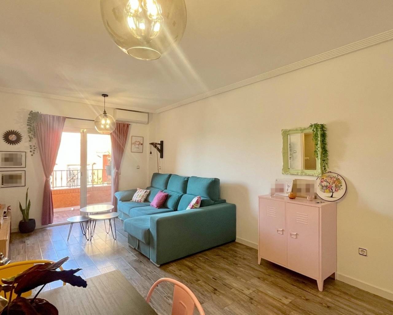 Modern 2-Bed Apartment in the Heart of Algorfa Village – Walking Distance to All AmenitiesDiscover this beautifully renovated 2-bedroom, 1-bathroom apartment perfectly situated in the charming village of Algorfa, just a short stroll from local shops, cafes, and amenities. Whether you're looking for a permanent residence, holiday getaway, or investment opportunity, this stylish apartment offers comfort, convenience, and a real sense of community.Step inside to find a bright, modern interior with a spacious living area that opens directly onto a private balcony – ideal for enjoying your morning coffee or evening glass of wine. The fully updated kitchen includes a handy separate patio, perfect for extra storage or utility use.The apartment boasts air-conditioning for both hot and cold climates, ensuring year-round comfort. The newly renovated bathroom features a sleek, contemporary design, while the master bedroom includes a built-in wardrobe and modern ceiling fan.Upstairs, residents enjoy access to a spacious communal solarium, where each apartment has its own designated area to relax and soak in the sunshine. Take a dip in the shared pool while enjoying breathtaking views of the Callosa Mountains and surrounding agricultural landscape – a truly serene and picturesque setting, especially at sunset.Additional features include:Lift access directly to the apartment doorOnly 6 apartments in the community5 minutes to La Finca Golf Resort15 minutes to the award-winning Costa Blanca beachesJust 35 minutes to Alicante AirportThis is a fantastic opportunity to own a low-maintenance, modern home in one of the Costa Blanca’s most sought-after villages. Don’t miss your chance to enjoy the relaxed Spanish lifestyle in style!