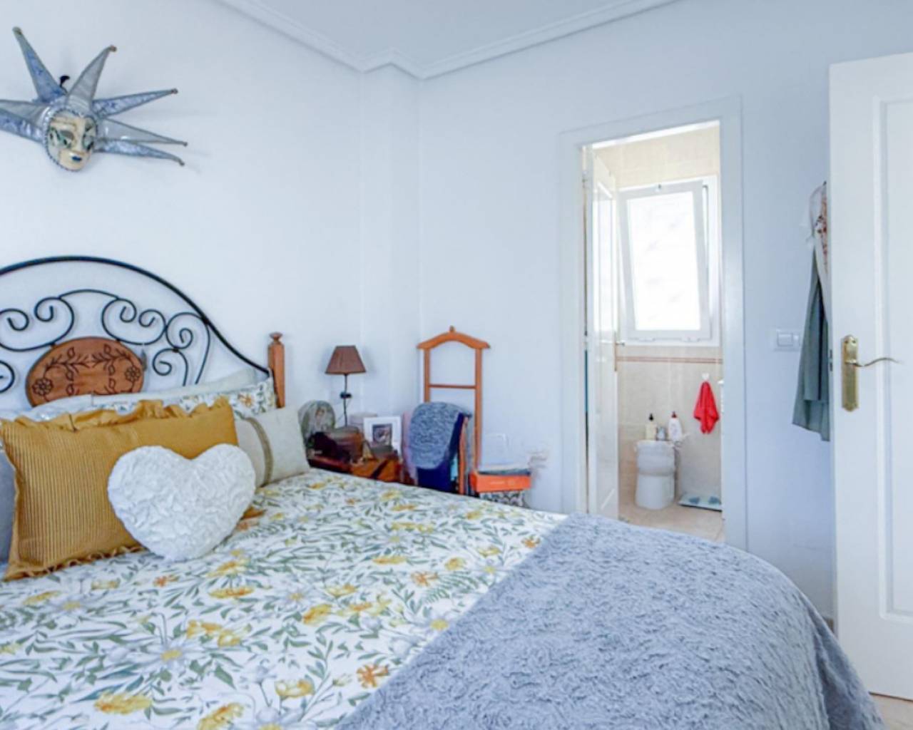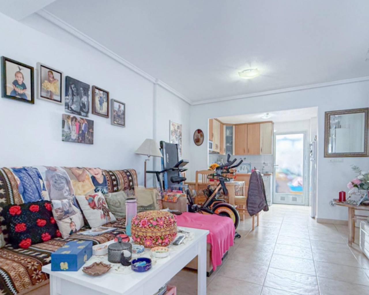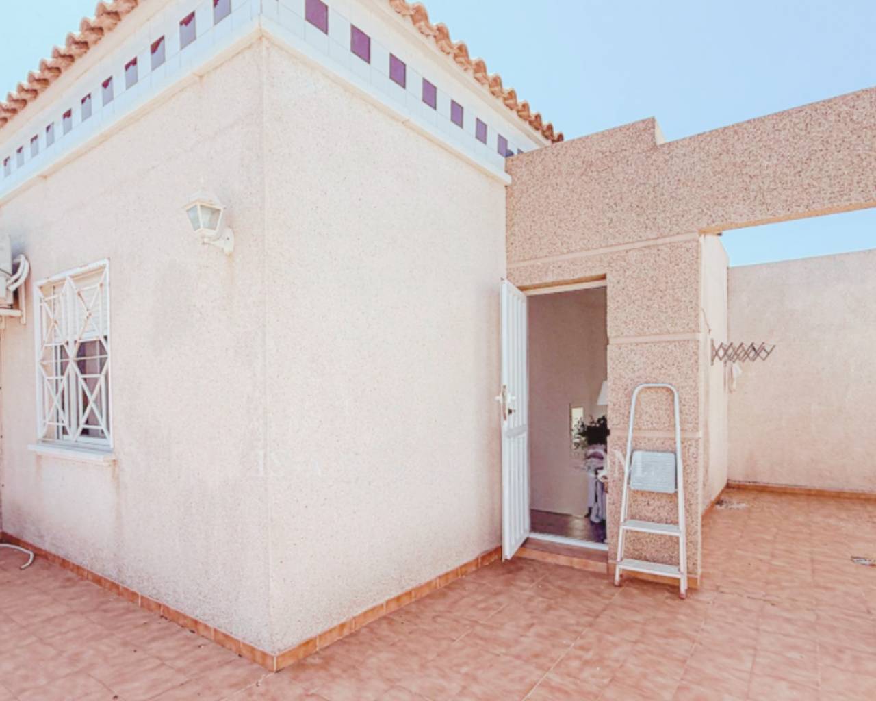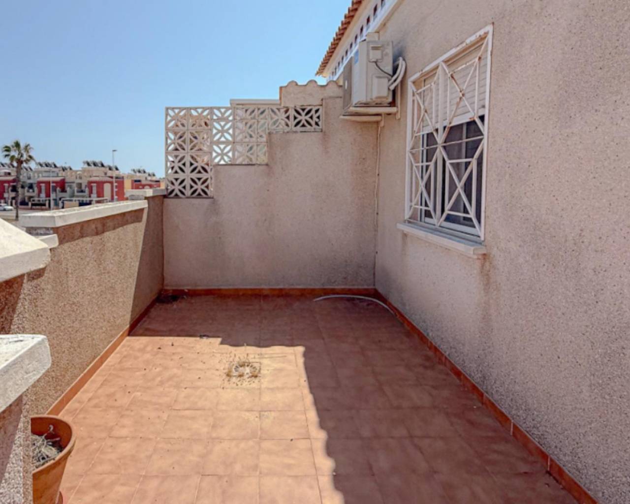 Townhouse in Aguas Nuevas, Torrevieja Beautiful semi-detached house with 101 m² built (80 m² usable), located just 650 meters from the beach. The property is distributed over two floors and offers 3 double bedrooms, 2 bathrooms, a fully equipped kitchen, and a bright living area. The home features oak interior carpentry, tiled floors, aluminum/climalit exterior windows, and northeast orientation. It is in very good condition and ready to move into. Extras include: air conditioning, built-in wardrobes, gallery, storage room, glazed terrace, private garden, community pool, solarium, high ceilings, and a parking space included in the price. Located in a well-connected residential area with bus services, medical centers, schools, supermarkets, parks, children’s play areas, and just steps away from the sea.