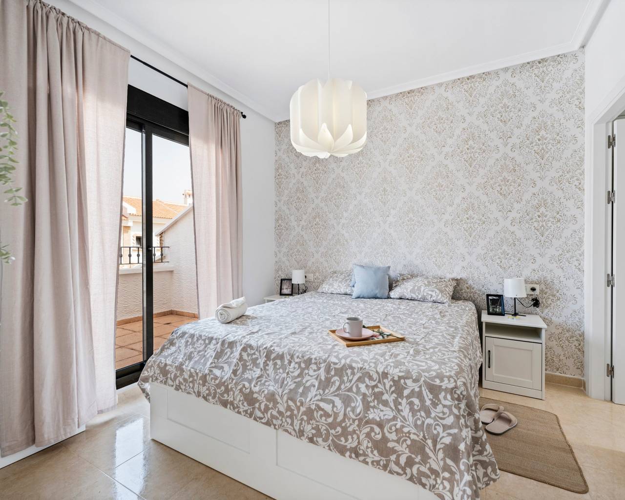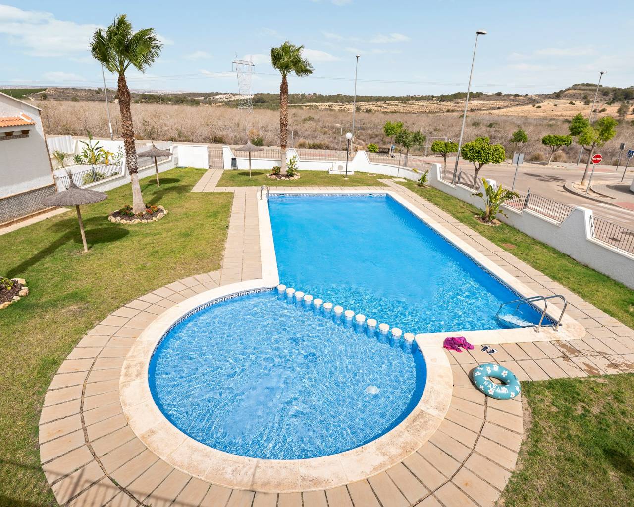 Modern Renovated Townhouse for Sale in Mirador de San Miguel, Costa Blanca South Discover this beautifully renovated two-story townhouse located in the quiet and sought-after urbanization of Mirador de San Miguel, just a short drive from Torrevieja and the Mediterranean beaches. This charming townhouse offers the perfect blend of modern comfort and Mediterranean lifestyle. With 3 spacious bedrooms and 3 bathrooms (two of them en-suite), the property provides both privacy and functionality for families or those looking for a peaceful retreat in the Costa Blanca South. On the ground floor, you’ll find a bright and spacious living room, a fully equipped kitchen, one bedroom with direct access to the rear porch, a bathroom, and a separate laundry room.The upper floor includes two additional bedrooms, each with an en-suite bathroom, and access to a large roof terrace — ideal for sunbathing or enjoying a relaxing evening drink. The exterior features an 82m² front garden, a private underground parking space, and a storage room. The residential complex also includes a large communal swimming pool, perfect for enjoying the warm Mediterranean climate. Located just 15 minutes from the beach and only 5 minutes from local shops, restaurants, and bars, this property offers a perfect combination of tranquility and convenience. It’s also close to several renowned golf courses, making it an excellent choice for golf lovers and anyone seeking a holiday home or permanent residence in Spain. Key Features Fully renovated and sold furnished 3 bedrooms, 3 bathrooms (2 en-suite) Large roof terrace and sunny private garden Communal swimming pool Underground parking & storage room Peaceful residential area near San Miguel de Salinas Only 15 minutes from the beaches of Torrevieja and Orihuela Costa Don’t miss the opportunity to buy this stunning modern townhouse in Costa Blanca South — ready to move in and enjoy the Mediterranean lifestyle!