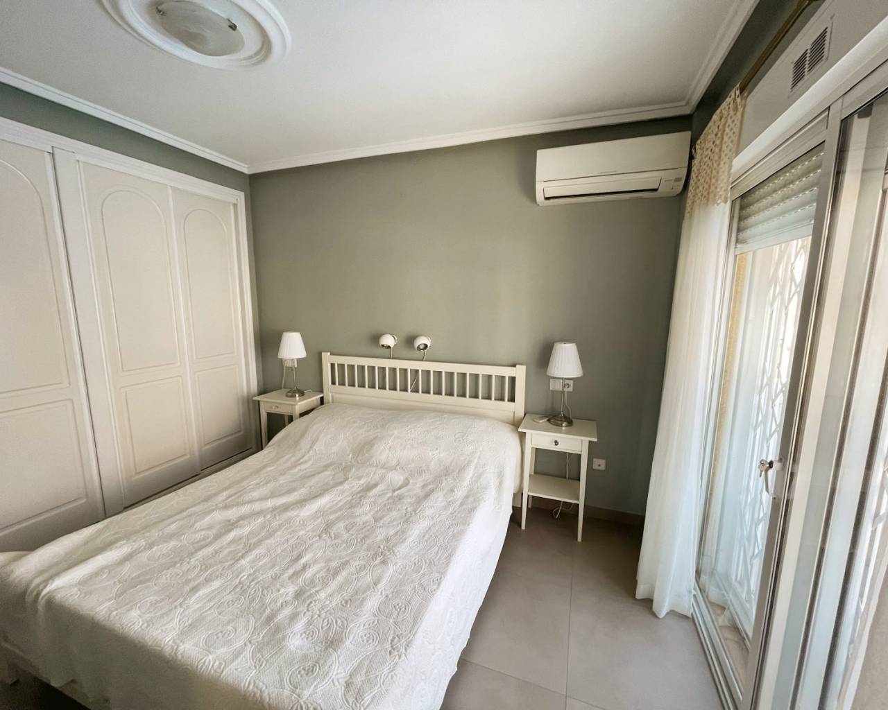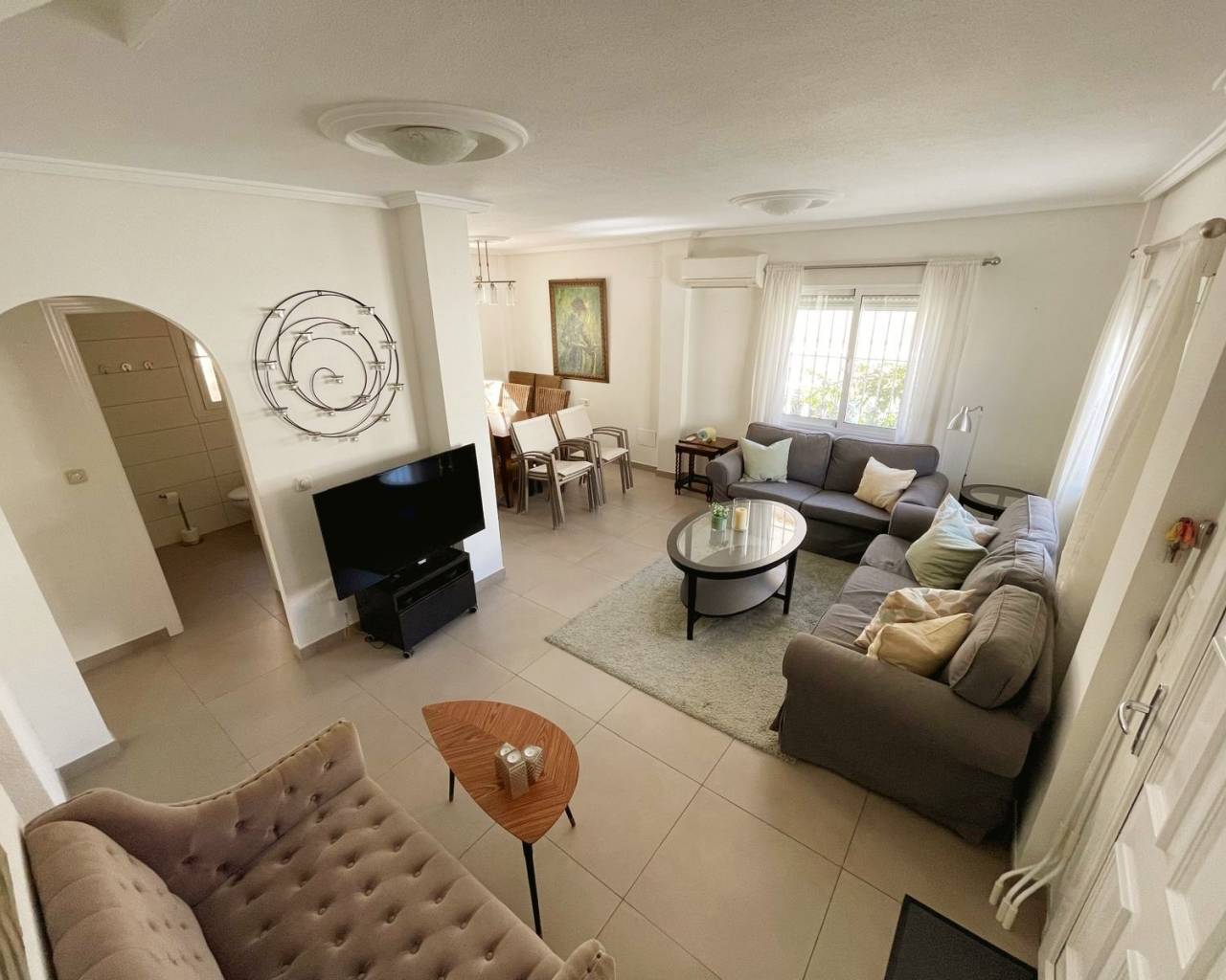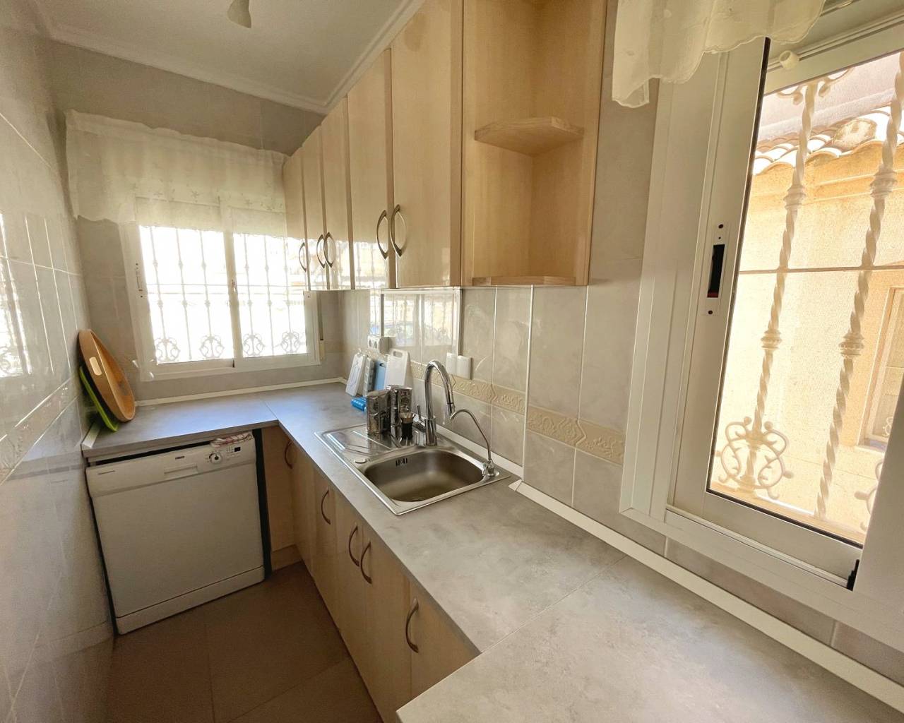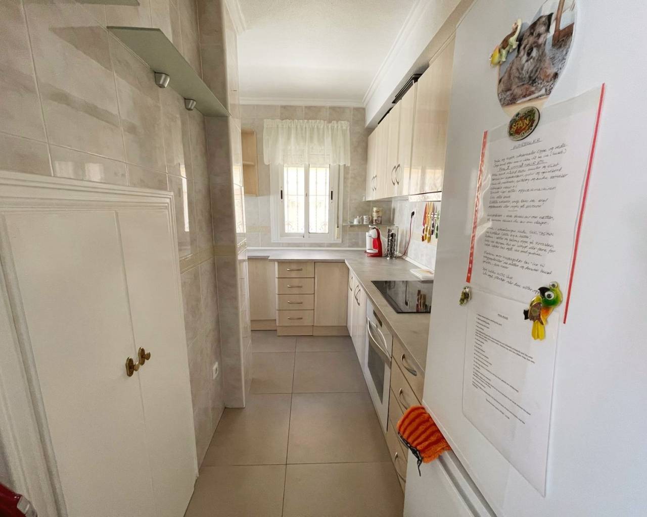 A popular Jazmine style villa is presented for sale in excellent condition and has been maintained to a very high standard. This property offers a spacious 2 bedroom 2 bathroom accommodation, having been redesigned into a 2 bed version with an enlarged lounge and separate dining area. On the ground floor is the large lounge / diner with triple aspect windows allowing natural light to flood into this property. A complete refitted “L” kitchen also enlarged allowing extra space and fitted out to perfection. A staircase leads up to the first floor landing with access to the master bedroom and ensuite. There is a glazed door form this landing that opens onto a private roof terrace. Patio doors also from the master bedroom open onto this same terrace. Outside, this property offers excellent out door relaxing and entertaining space which has been enhanced with full awnings and seating areas. The property has exception storage areas Viewing is highly recommended as this property has a lot more to offer
