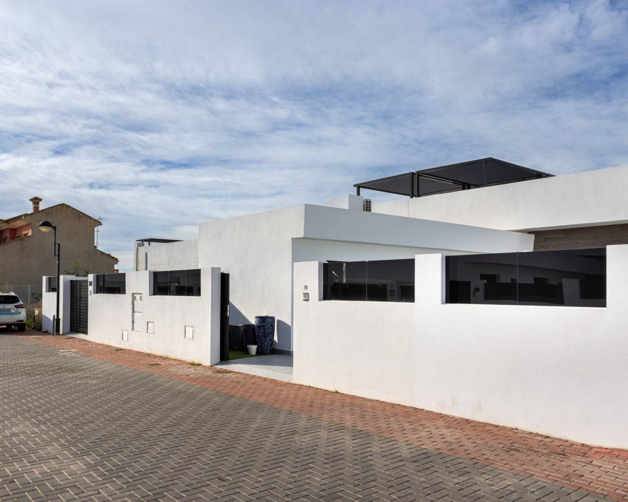 This charming detached villa offers the perfect balance of comfort, privacy, and Mediterranean living, situated in a quiet residential area of Torre-Pacheco, just minutes from all amenities. Built on a private plot of 151.71 m², the property has a built area of 85 m², all on one level. This makes the villa practical, accessible, and easy to maintain. Thanks to its east-facing orientation, the villa benefits from optimal natural light, making the interior bright throughout the day. Interiors, the property boasts three spacious bedrooms, all with fitted wardrobes, and two modern bathrooms, one of which is en-suite to the master bedroom. There is also a small laundry cupboard, both practical and discreet. The open-plan kitchen flows seamlessly into the living and dining area, creating a welcoming and functional space, ideal for both daily living and entertaining. The property is in excellent condition, ready to move into, and is sold fully furnished, including appliances and air conditioning for year-round comfort. Outdoors, this villa truly shines. The property boasts a private swimming pool surrounded by a well-proportioned garden, perfect for relaxing, sunbathing, or al fresco dining. A covered porch provides a shaded seating area, while the terrace and solarium offer additional space to soak up the sun, entertain, or simply unwind with unobstructed views and privacy. There is a shaded area on the upper level of the solarium, along with an outdoor kitchen, ideal for barbecues. The property also includes a private parking space on the plot and an intercom system for added security. Prime LocationBeaches: 20 minutesMurcia International Airport: 15 minutesLeisure areas, shops, and restaurants: 5 minutesGolf courses: 5 minutes This property is ideal as a permanent residence, holiday home, or investment property, thanks to its excellent location, outdoor space, and ready-to-move-in condition. A fantastic opportunity to enjoy the Costa Cálida lifestyle with comfort, sun and privacy.