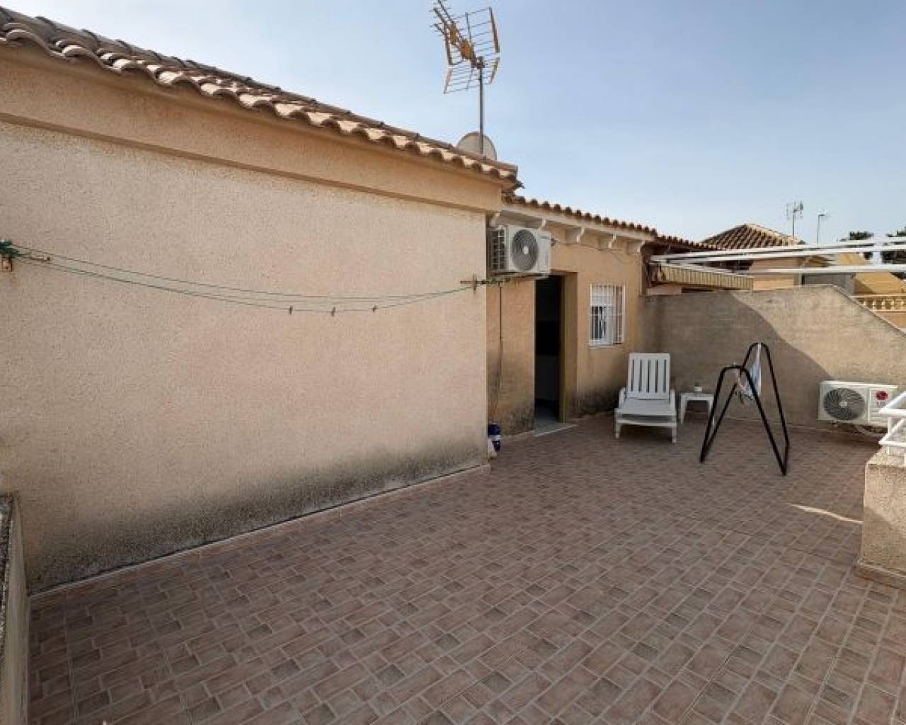 We present this charming townhouse located in the Los Altos area of Torrevieja, within the Vistalmar residential complex—a gated community that offers tranquility and comfort. The property features 3 bedrooms, 1 full bathroom, and a practical layout, making it ideal both as a permanent residence or a holiday home. It also includes a small private plot with a barbecue area, perfect for enjoying the pleasant climate all year round and sharing special moments outdoors. The residential complex offers a communal swimming pool and a well-maintained environment, ideal for relaxing in a peaceful setting. In addition, its excellent location means you are just minutes away from all kinds of amenities such as supermarkets, restaurants, shopping centers, and public transport. A perfect opportunity for those looking for a comfortable, well-located home that is ready to move into.