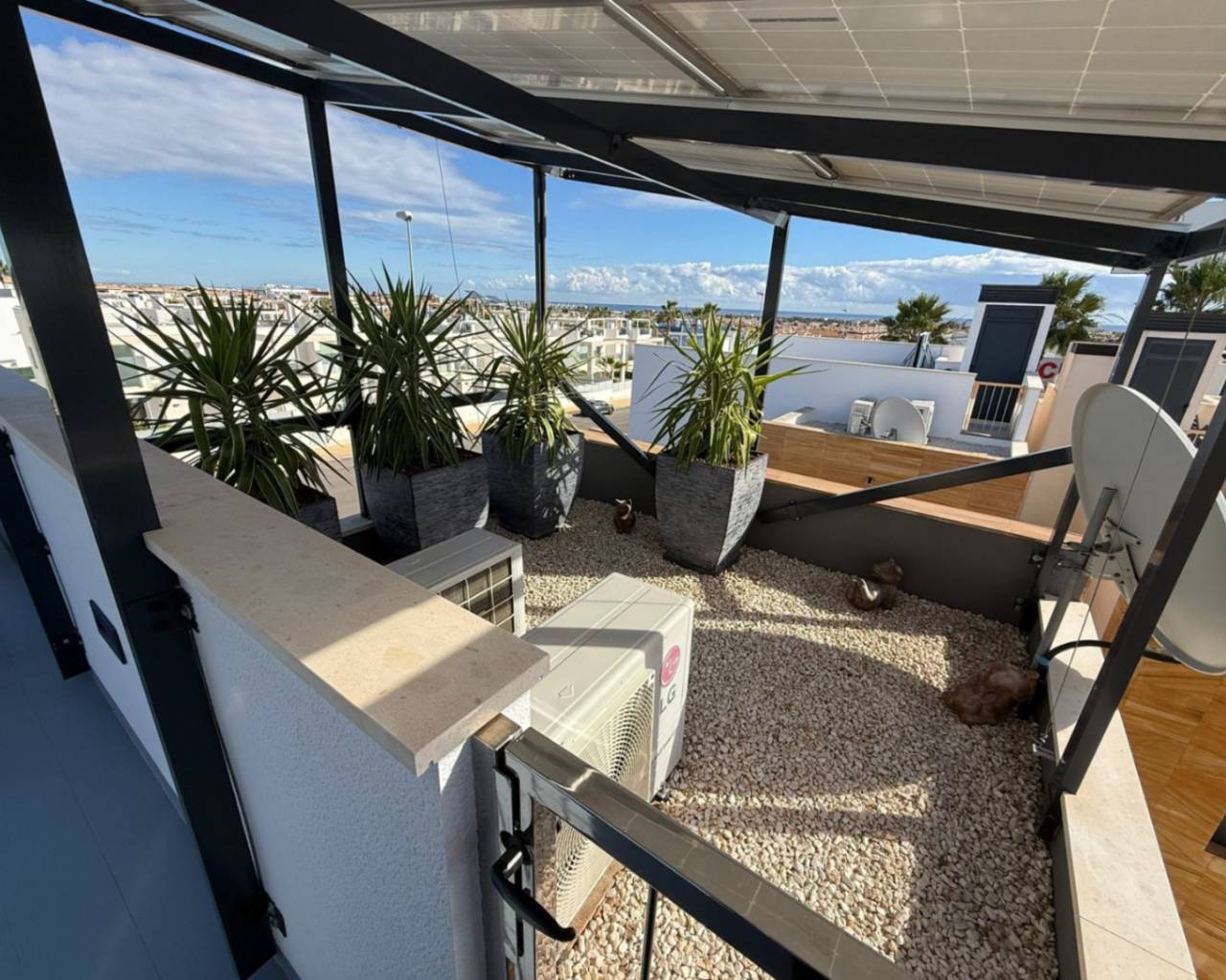 A Gem in Lomas de Cabo Roig Located in the charming area of Lomas de Cabo Roig, in the fascinating city of Orihuela, this modern property offers a bright and stylish space. With a contemporary design, this three-bedroom, three-bathroom home invites you to enjoy life to the fullest, combining comfort, elegance, and functionality in every corner. Layout and Spaces With a usable area of 127.17 m², this residence has been designed to provide an exceptional living experience. The spacious bedrooms are havens of tranquility, while the modern bathrooms reflect a contemporary approach to comfort. The open layout of the American-style kitchen encourages togetherness and memorable family moments, creating a warm and inviting atmosphere. Exterior Features and Amenities Set on a plot of 197.49 m², this home stands out with its magnificent private pool, perfect for enjoying sunny summer days. Well-kept gardens surround the property, offering a perfect space to relax or socialize with friends. The northwest orientation allows sunlight to bathe the space during the golden hours of the day, filling the home with positive energy. Quality and Security Equipped with air conditioning and ducted heating, comfort is guaranteed throughout the year. The property also includes security features such as security doors and double-glazed windows, ensuring a peaceful and protected environment. With a garage and storage space, every detail has been considered to meet the needs of modern living. Connectivity and Accessibility Thanks to its excellent location, residents will enjoy good communication with the services and amenities in the area. The environment offers a variety of leisure and entertainment options, in addition to being a perfect starting point to explore the beautiful beaches and landscapes of the province of Alicante. A Sustainable Home The property has a B energy certification, highlighting its efficiency and commitment to the environment. This feature not only promotes a more sustainable lifestyle but also ensures lower energy consumption costs. Stepping into this home in Lomas de Cabo Roig, you will find the perfect space to create valuable memories and enjoy a fulfilling life in a privileged environment. An opportunity that redefines the quietness of everyday life, turning each day into a celebration of comfort and style. Don't miss the chance to make this place your new home!