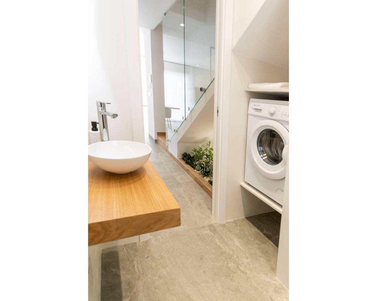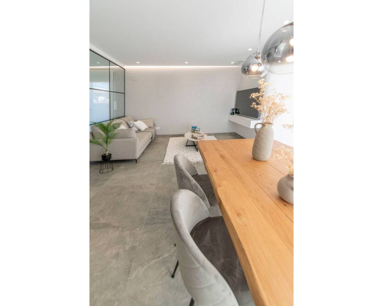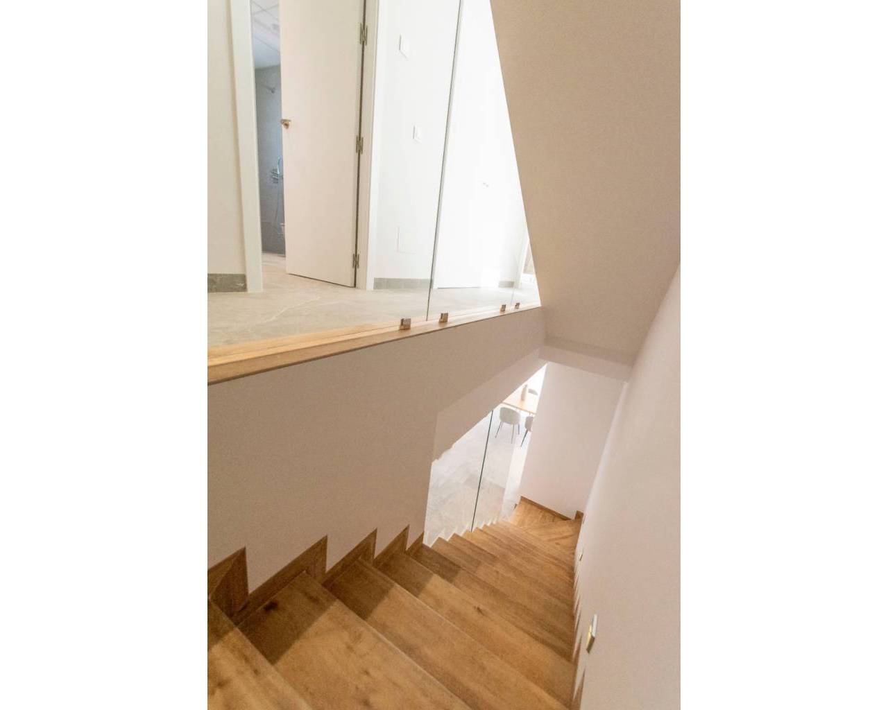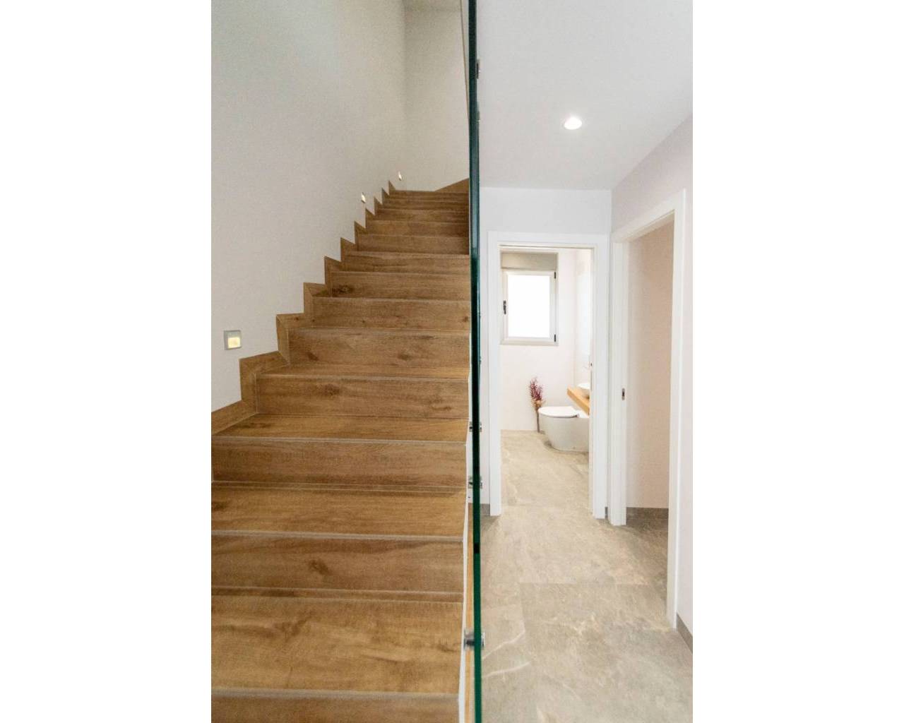 Fantastic Villa for sale located in Lo Romero Golf, Pilar de la Horadada. In the centre of the Lo Romero Golf Club is this private residential complex , with a communal pool and views of the golf course and its idyllic surroundings. 7km from the seaport and the best beaches of Torre de la Horadada such as the Jesuit beach, known for its large size, its clean waters and white sand, in addition to the fact that it is very common to practice sports such as volleyball, handball, surfing, etc. You will also find beautiful coves where you can dive and get to know the marine fauna first-hand. Two-storey villa of 127.44m² that is distributed in a spacious living room attached to an American kitchen with breakfast bar on the peninsula, it also consists of two large terraces and a swimming pool. Three double bedrooms two of them en suite with en-suite bathroom and a separate bathroom. The house has been designed and built with the best qualities on the market and a contemporary style, quite bright, with windows in all orientations. On the third floor there is a solarium of 54.00m² where you can enjoy the views and the sunny days offered by the Mediterranean.