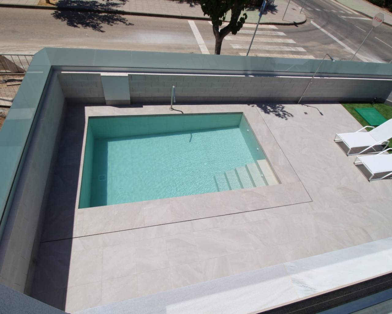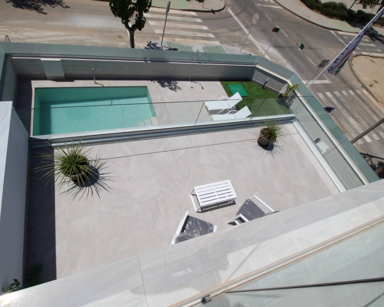 Two-storey villa of 232.26m² that is distributed in a spacious living room attached to an open plan kitchen with breakfast bar on the peninsula, it also consists of two large terraces and a swimming pool. Three double bedrooms, one of them en suite with en-suite bathroom, a separate bathroom and a toilet. The house has been designed and built with the best qualities on the market and a contemporary style, quite bright, with windows in all orientations. On the third floor there is a solarium of 28.85m² where you can enjoy the views and the sunny days offered by the Mediterranean.