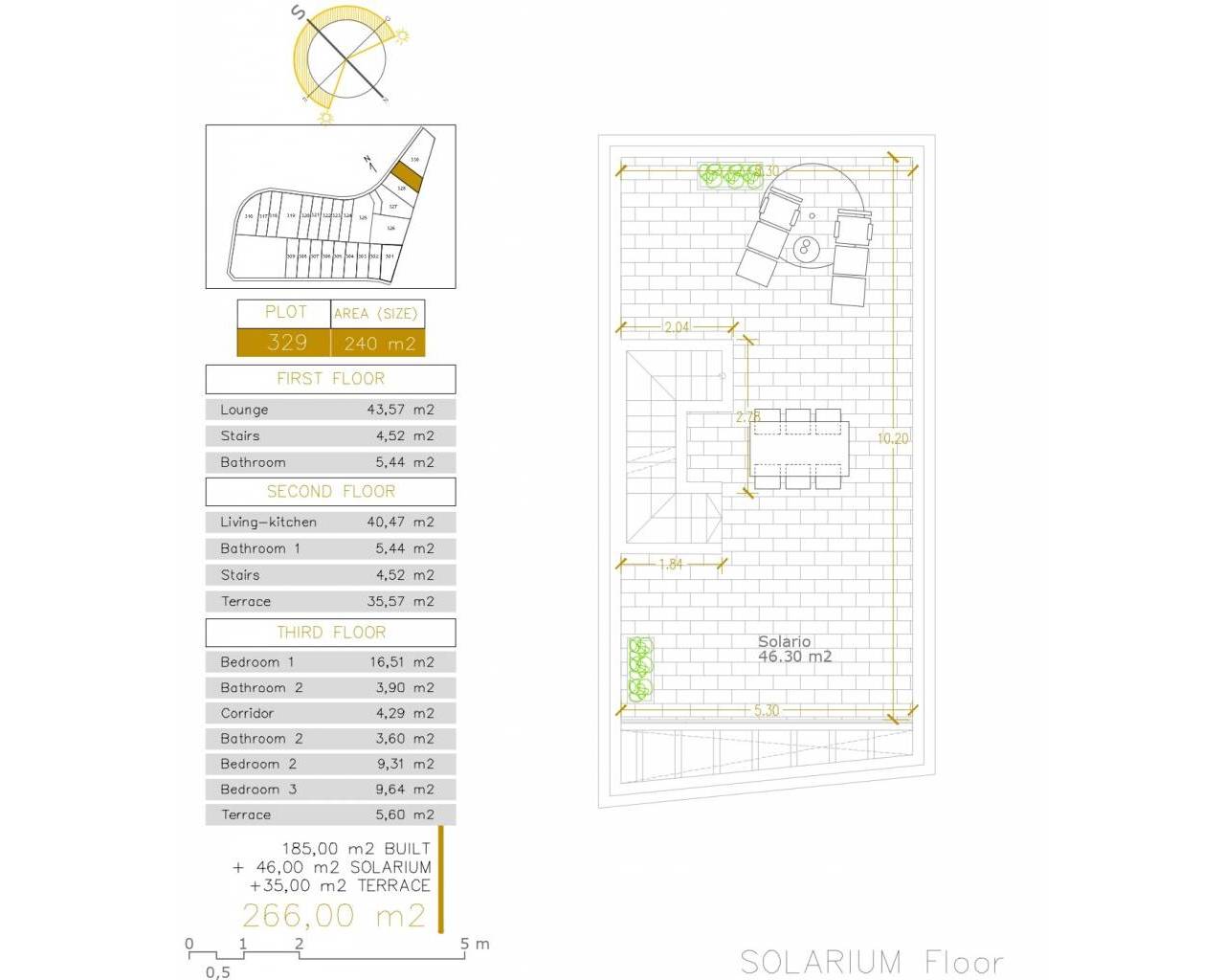 Spacious two-storey  villa with garden and private pool. Ground floor with a spacious living room attached to an American kitchen with breakfast bar on the peninsula and separate bathroom. On the first floor, 3 double bedrooms, one of them en suite with en-suite bathroom and with access to a beautiful terrace. And two separate bathrooms.  Outside access to the upper floor with solarium from where you can enjoy the summer afternoons in privacy. The property is sold fully furnished and equipped. Double bedrooms, one of them en suite with en-suite bathroom,  Outside access to the upper floor with solarium of 46.30m², where you can enjoy the summer evenings in privacy.
