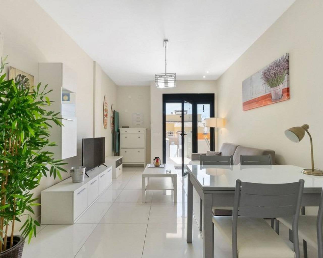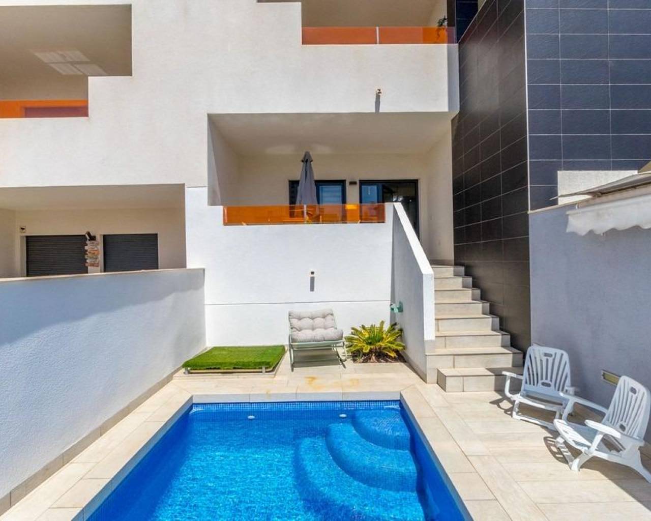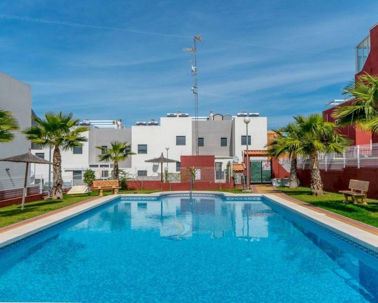 Ваш личный оазис на солнце~~Представьте, что вы просыпаетесь каждый день в современном бунгало на первом этаже, с южной ориентацией, чтобы наслаждаться светом и теплом круглый год. Ощутите комфорт двух спален с собственной ванной, просторной гостиной-столовой с кухней в американском стиле и зонами, созданными для вашего комфорта: веранда, задний двор и собственный бассейн, чтобы освежиться в любое время. Жильё имеет лицензию для туристов.~~Предлагается полностью меблированным в современном стиле и оснащено централизованным кондиционированием (холод/тепло), электрическими жалюзи и многим другим. Кроме того, вы получите доступ к общему бассейну с зелёными зонами для отдыха или общения с друзьями и семьёй. Превосходное расположение: всего в нескольких шагах от торгового центра, супермаркета и всех необходимых услуг. Также имеется общая парковка на улице, где можно удобно припарковать автомобиль.~~Готово к заселению и жизни. Ваш новый дом на Средиземном море ждёт вас!