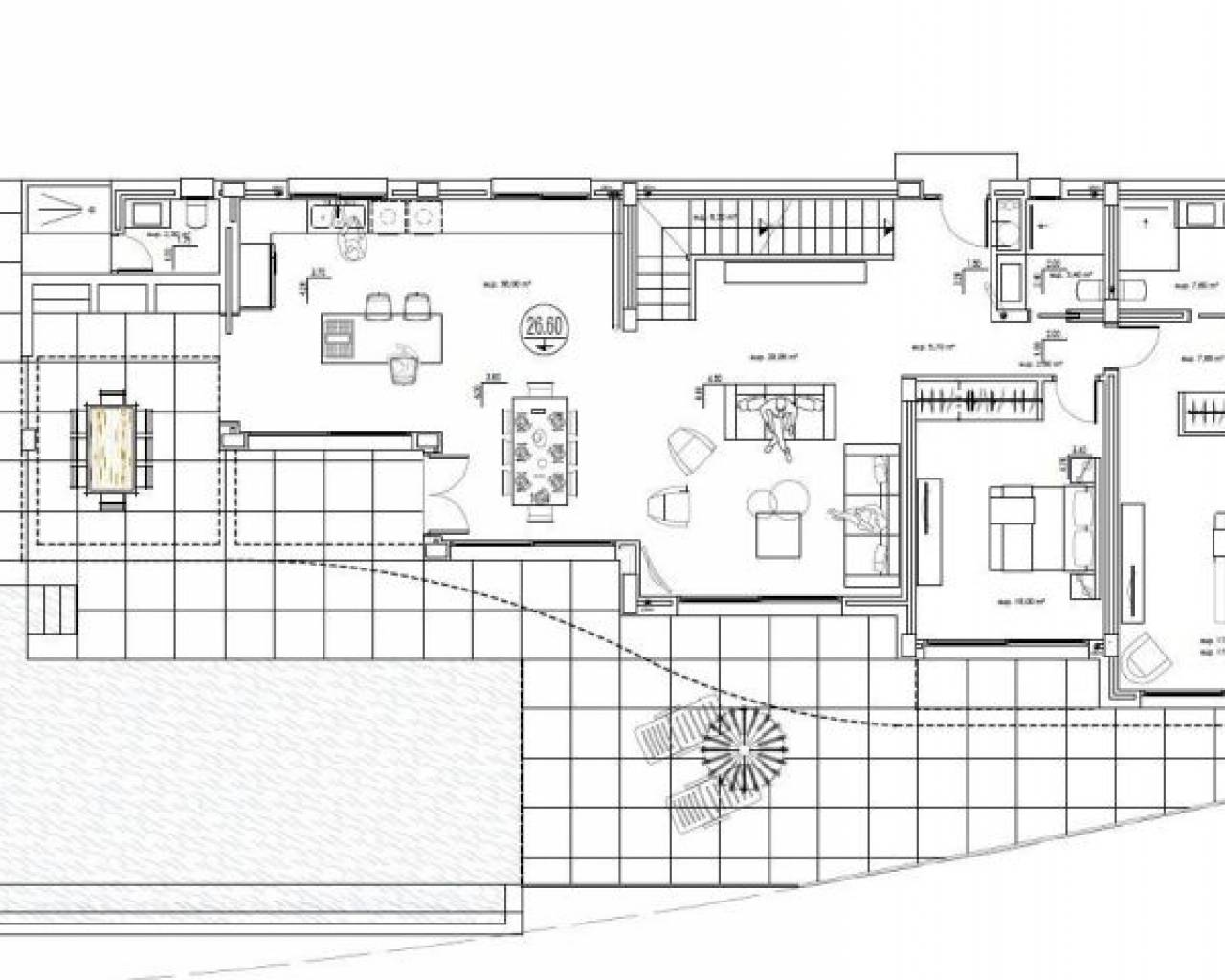 НОВАЯ ВИЛЛА С ВИДОМ НА МОРЕ В БЕНИССЕ Новая вилла класса люкс, построенная на большом участке площадью 1250 м2, с потрясающим видом на море и открытыми видами в сторону Морайры. Морайра, очень удачно расположенная в тихой урбанизации всего в 200 м от пляжа Ла Фустера и в 2 км от центра Кальпе. центра Кальпе. Роскошная вилла расположена на 3 этажах и имеет 4 спальни, 5 ванных комнат, оборудованную кухню открытого плана, гостиную с большими окнами и прямым выходом к бассейну. Красивая терраса с бассейном и зоной барбекю, откуда открывается прекрасный вид на море. Вилла расположена в одном из самых красивых жилых районов Коста Бланки. Города Кальпе, Бенисса и Морайра предлагают необычайно привлекательную береговую линию, представляющую большой живописный и экологический интерес, с изрезанной береговой линией с многочисленными пляжами и скрытыми бухтами. Бенисса расположена между Валенсией и городом Аликанте. Аэропорт Манисес в Валенсии находится в часе езды, а аэропорт Л'Альтет в Аликанте - в 50 минутах езды. Оба аэропорта являются крупными международными аэропортами, обслуживаемыми большим количеством бюджетных авиакомпаний.