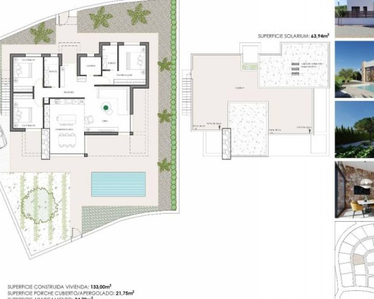 Новые виллы в Hacienda del Álamo Golf Resort, Мурсия Современные дома в эксклюзивном природном окруженииОткройте для себя эти фантастические виллы новой постройки в престижном Hacienda del Álamo Golf Resort, закрытом жилом комплексе в регионе Мурсия, который сочетает в себе спокойствие, безопасность и полный спектр услуг. Окруженный природой и с прекрасным климатом, этот комплекс идеально подходит для тех, кто ищет спокойный образ жизни, не отказываясь от комфорта. Виллы с 3 спальнями на одном этаже с соляриемЖилой комплекс состоит из 39 вилл на участках площадью от 436 м2. Все дома имеют 3 спальни и 2 ванные комнаты на одном этаже, а также террасу с частным бассейном и частный солярий на крыше с видом на поле для гольфа. Высококачественная отделка и гарантированный комфортДома построены из высококачественных материалов и спроектированы с учетом энергоэффективности и комфорта: Наружная столярка с термомостомГорячее водоснабжение с помощью аэротермической системыПредварительная установка канального кондиционераЧастный бассейнНезависимая система полива с накопительным баком и индивидуальным насосом, с водоразборными кранами в гараже и саду.Моторизованные ворота для въезда автомобилей. Курорт с полным спектром услуг и полем для гольфаHacienda del Álamo - один из самых полных комплексов на побережье Коста-Кальида. Он располагает: Профессиональным полем для гольфа на 18 лунокОтелем со спа-центромСупермаркетомРесторанами и барамиСпортивными площадками и зелеными зонамиКруглосуточной охраной Урбанизация воссоздает атмосферу традиционного средиземноморского поселка с тихими улочками и тщательно продуманным дизайном. Стратегическое расположение рядом со всемМеждународный аэропорт Мурсии (Корвера): 20 кмДополнительные поля для гольфа: менее 10 кмКартахена: 35 кмПляжи Мар Менор: 30 кмТорговый центр Espacio Mediterráneo: 28 кмПорт Мазаррон: 40 км Живите стильно на побережье Коста-КальидаЭти виллы представляют собой отличную возможность для жизни или инвестиций в одном из самых перспективных районов Мурсии. Свяжитесь с нами сейчас и откройте для себя свой новый дом в Hacienda del Álamo Golf Resort.