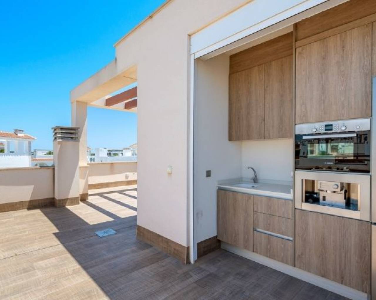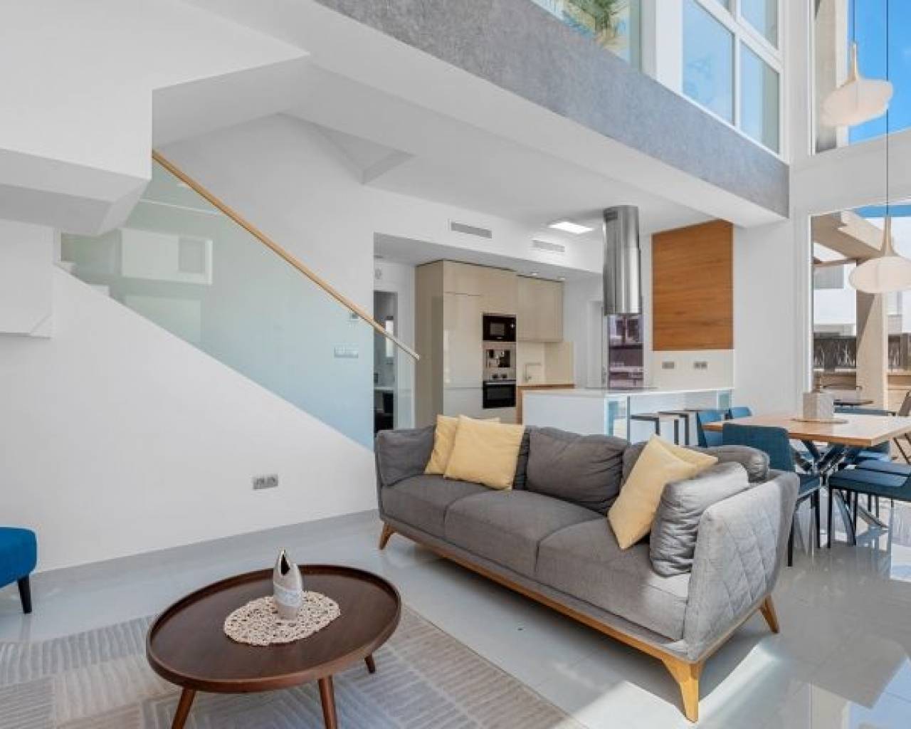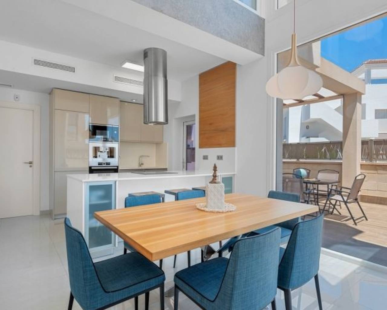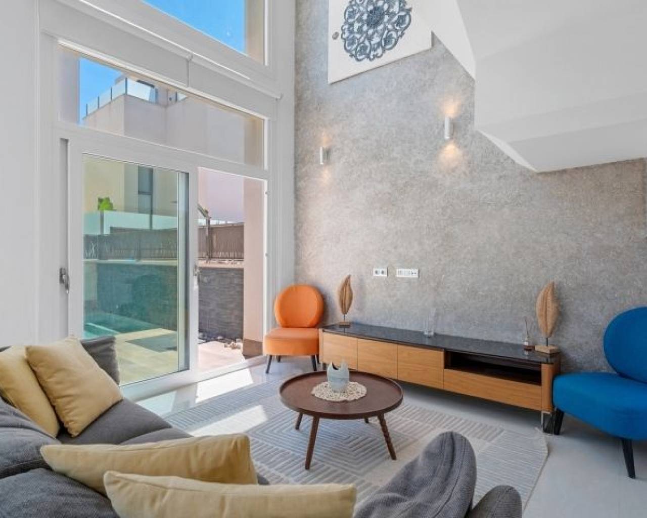 Этот дом, построенный в 2018 году и расположенный в тихом жилом районе Сьюдад-Кесада, отличается функциональной планировкой и эффективно используемым внутренним и внешним пространством. Площадь дома составляет 101 м², а площадь участка — 184 м². В доме три спальни, три ванные комнаты, подвал и терраса на крыше. На первом этаже расположены гостиная, столовая и кухня открытой планировки с центральным островом. На этом этаже также расположена спальня со встроенным шкафом, полноценной ванной комнатой, прачечной и прямым выходом в сад и к собственному бассейну. На втором этаже расположены две дополнительные спальни. В главной спальне есть собственная ванная комната и выход на собственную террасу. Вторая спальня расположена рядом с еще одной полноценной ванной комнатой. Обе комнаты соединены коридором. Подвал в настоящее время используется как зона отдыха с бильярдной и предоставляет дополнительное пространство для различных целей. На частной террасе на крыше расположена полностью оборудованная и функциональная летняя кухня с прямым доступом из дома, что делает ее удобным местом для круглогодичного проживания. На территории дома есть собственный бассейн размером 3,30 х 6,50 метра, искусственный газон и собственная парковка на участке. Благодаря угловому расположению дом имеет больше естественного света и большую независимость от соседних домов. Дом продаётся полностью меблированным, с кондиционером, встроенными шкафами, автоматическими жалюзи, москитными сетками, системой безопасности и полностью оборудованной кухней. Дом подходит как для постоянного проживания, так и для отдыха, а также находится недалеко от всех необходимых коммуникаций и основных подъездных путей.