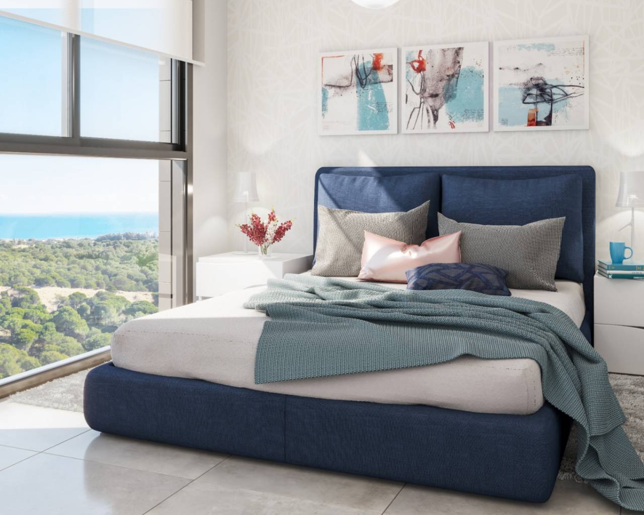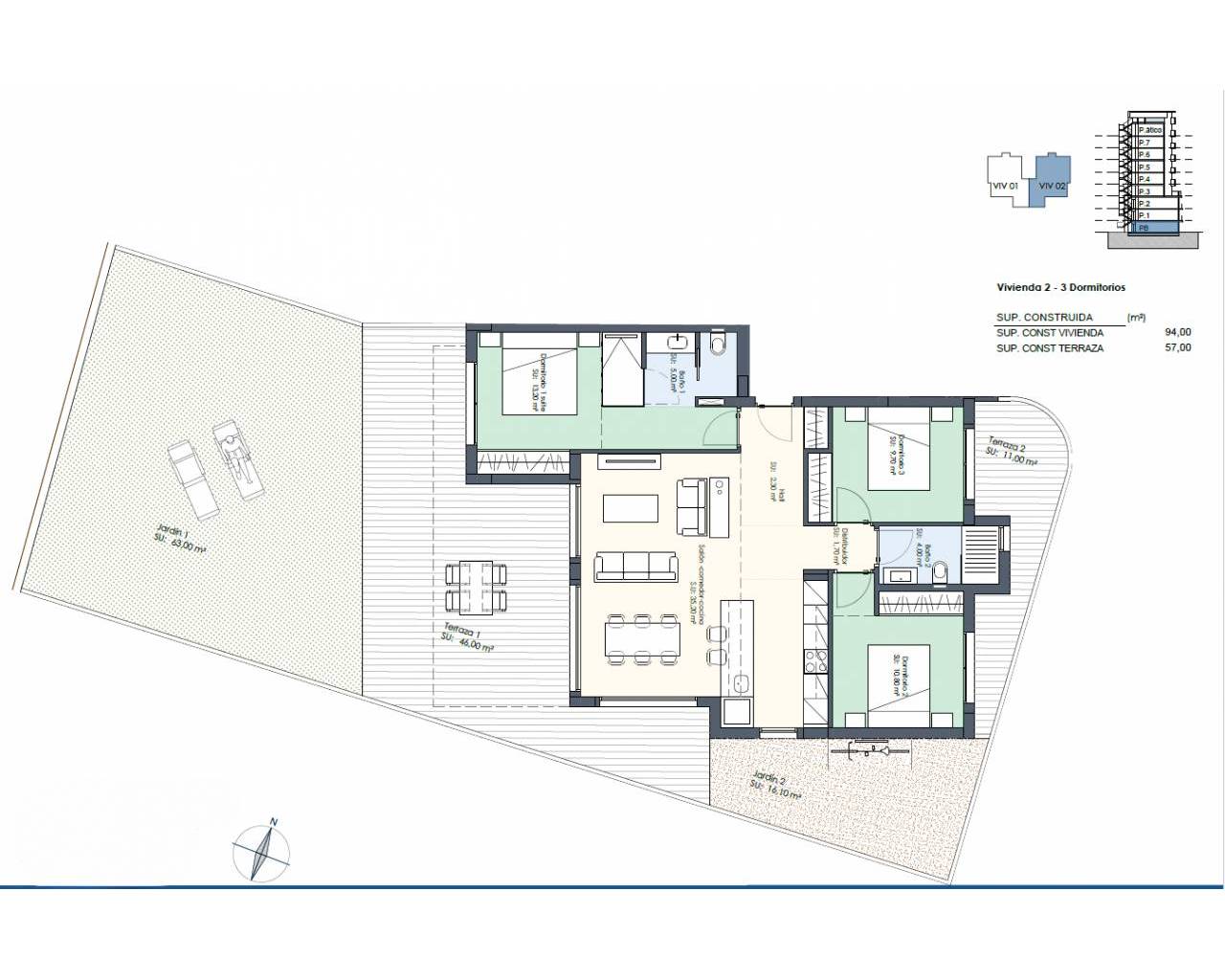 Апартаменты на первом этаже площадью 94,00 м² , которые расположены в просторной гостиной, соединенной с открытой кухней, трех спальнях с двуспальными кроватями, одна из которых с ванной комнатой и отдельной ванной комнатой. Доступ к невероятным террасам общей площадью 57,00 м² спереди и сзади, а также к фантастическому саду, где вы можете наслаждаться солнечными днями, которые предлагает нам Средиземное море.